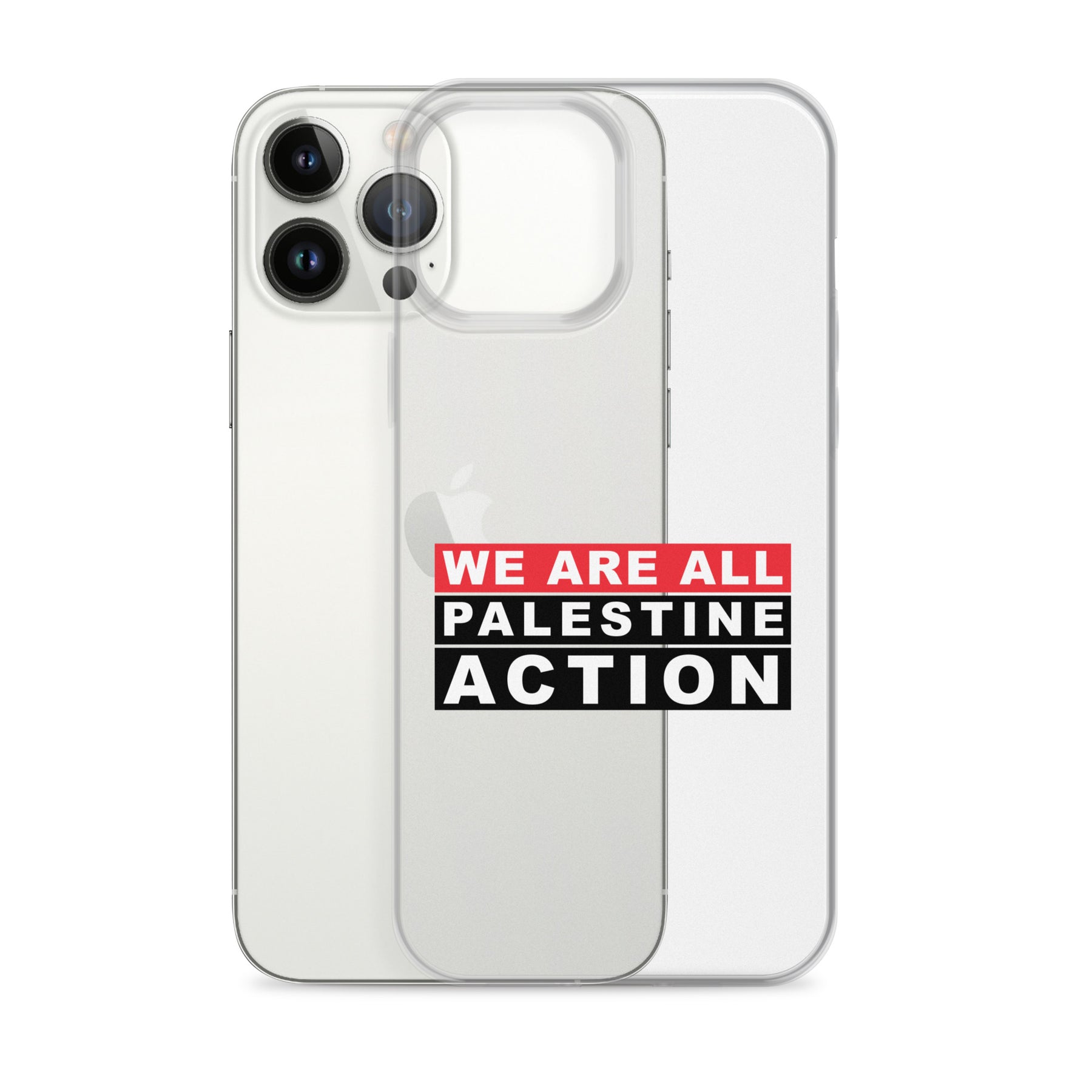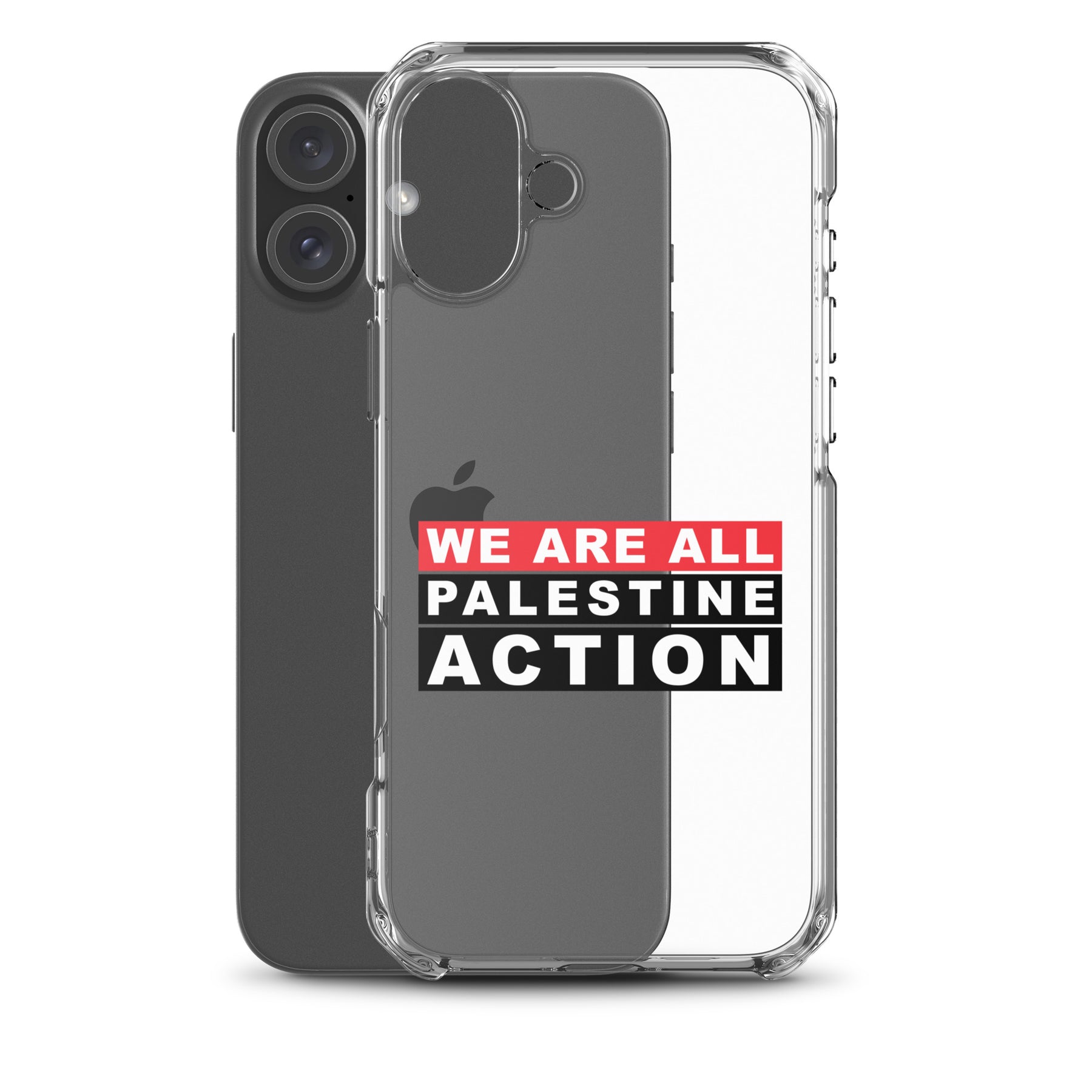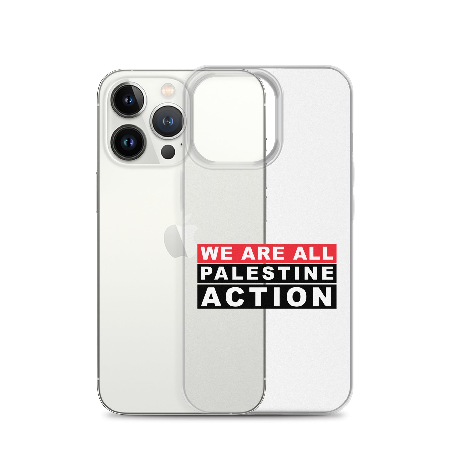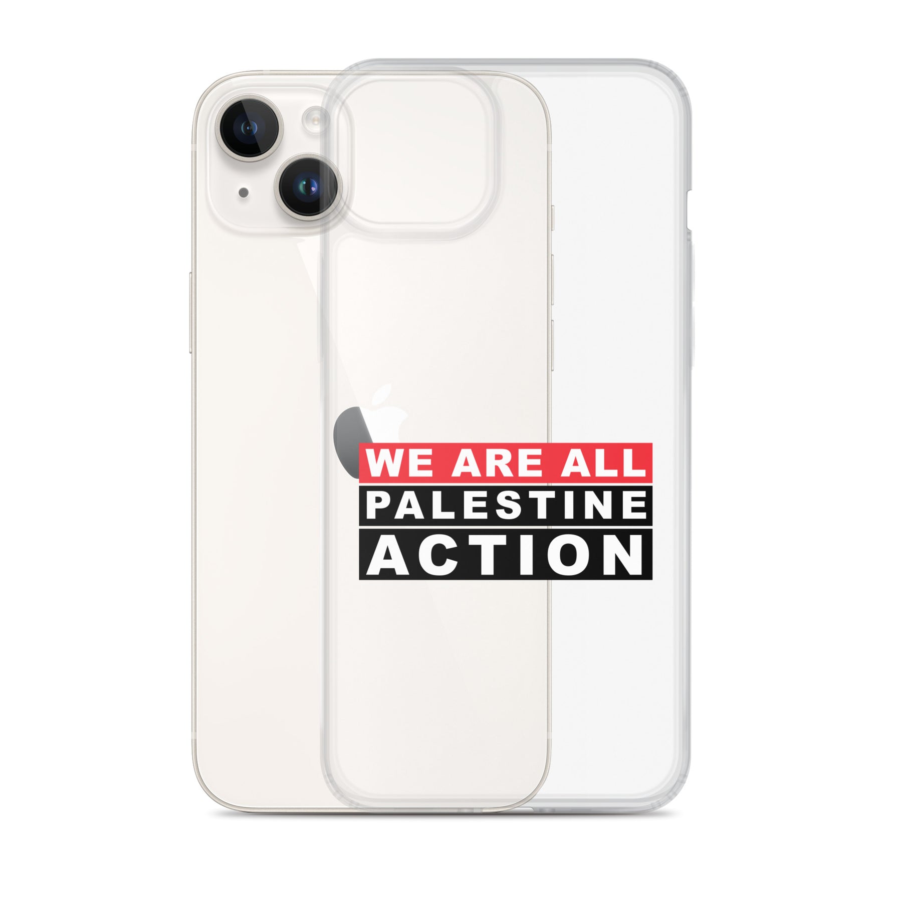 This clear case for iPhone® doesn’t hide your phone—or your politics. Featuring the unapologetic message “We Are All Palestine Action,” it stands in solidarity with the people of Palestine, supporting the call to end occupation and oppression.