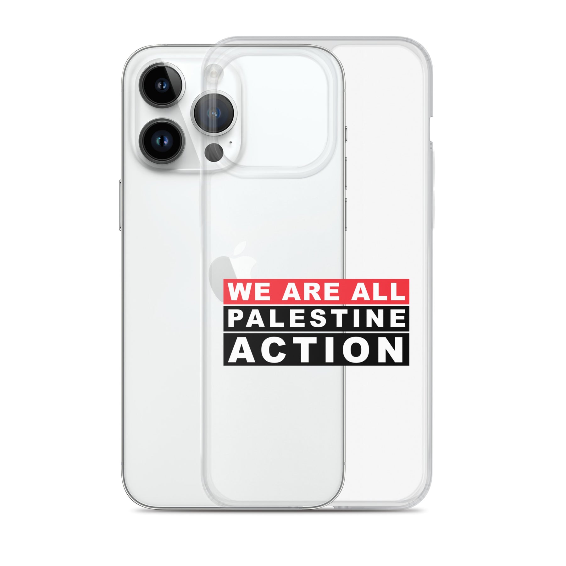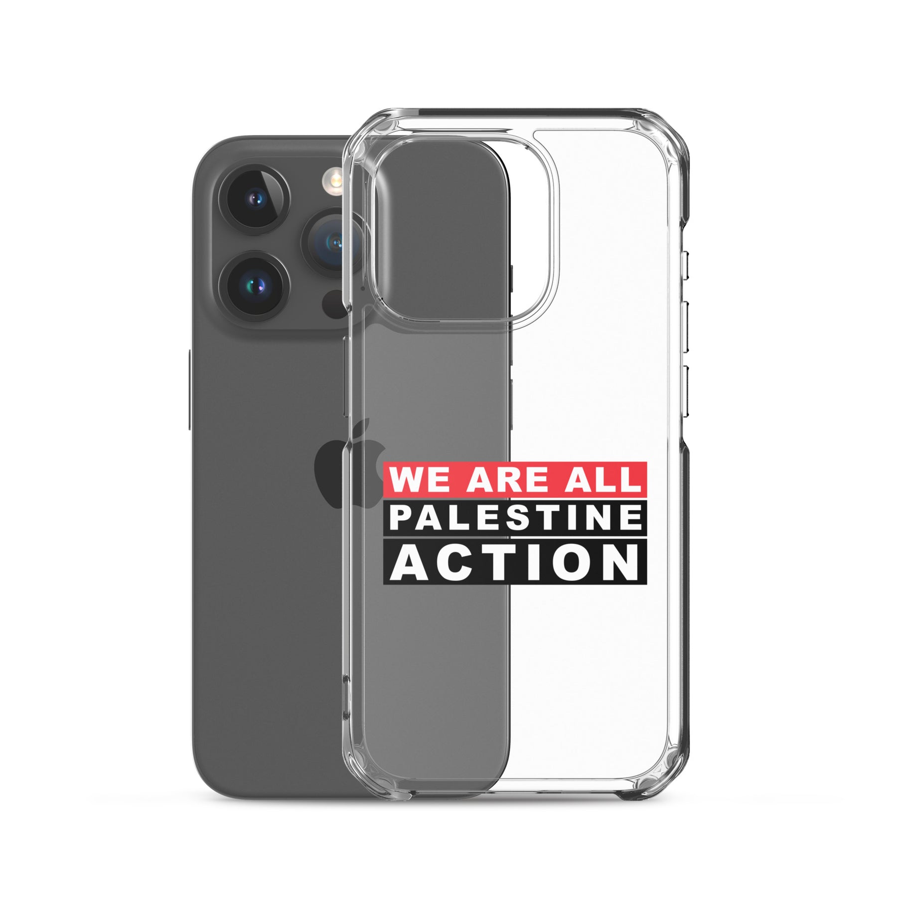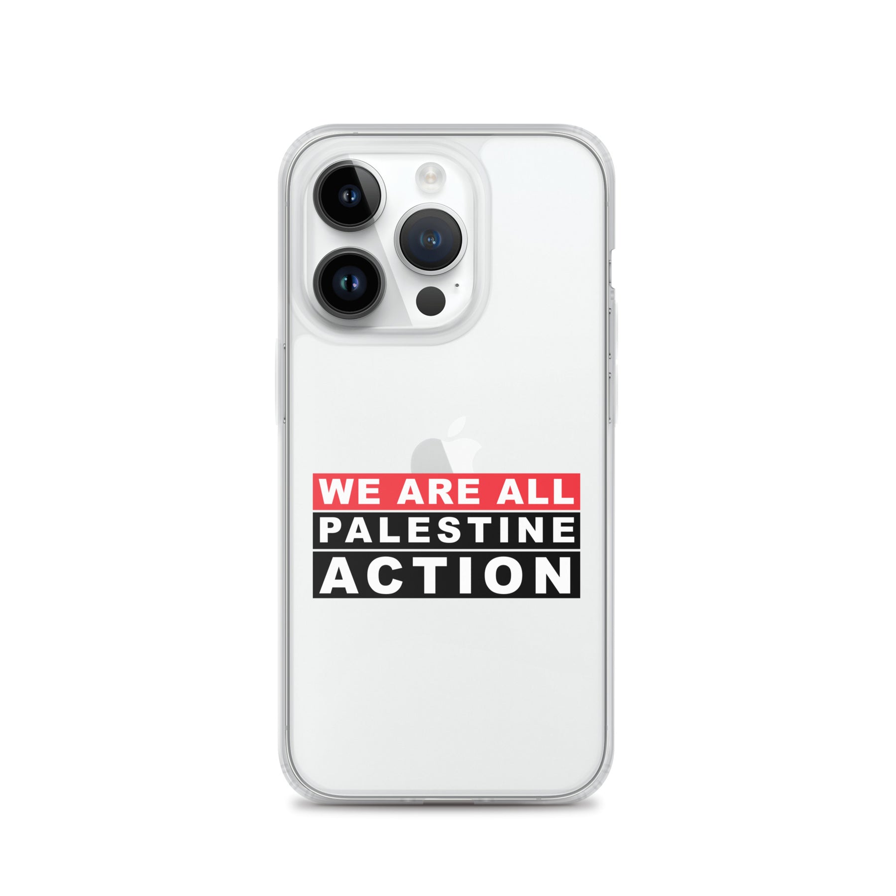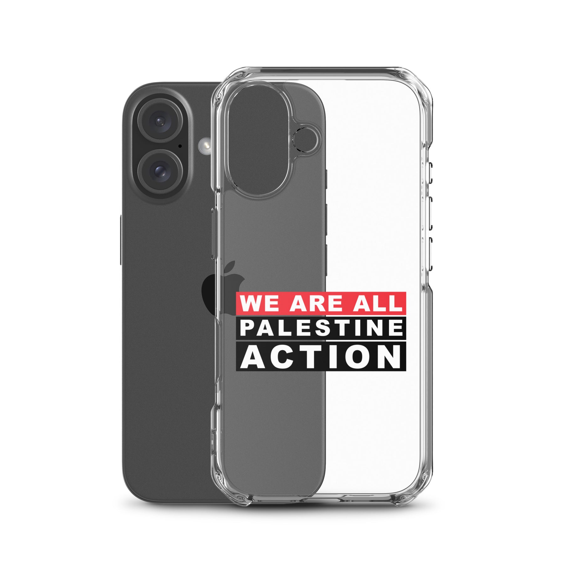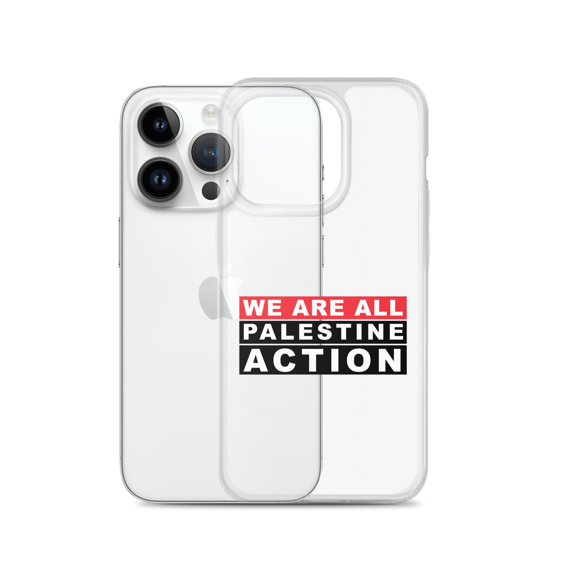 This clear case for iPhone® doesn’t hide your phone—or your politics. Featuring the unapologetic message “We Are All Palestine Action,” it stands in solidarity with the people of Palestine, supporting the call to end occupation and oppression.