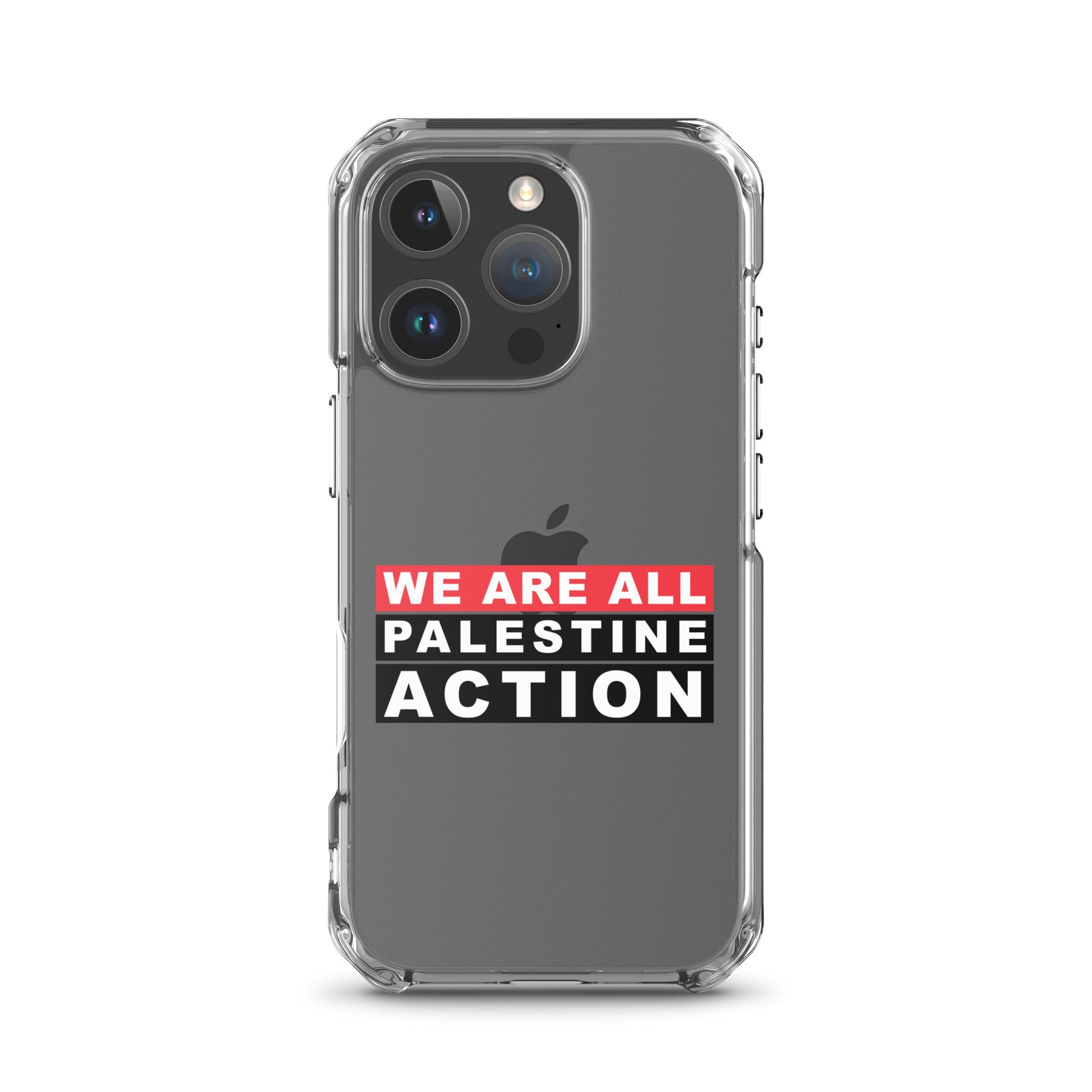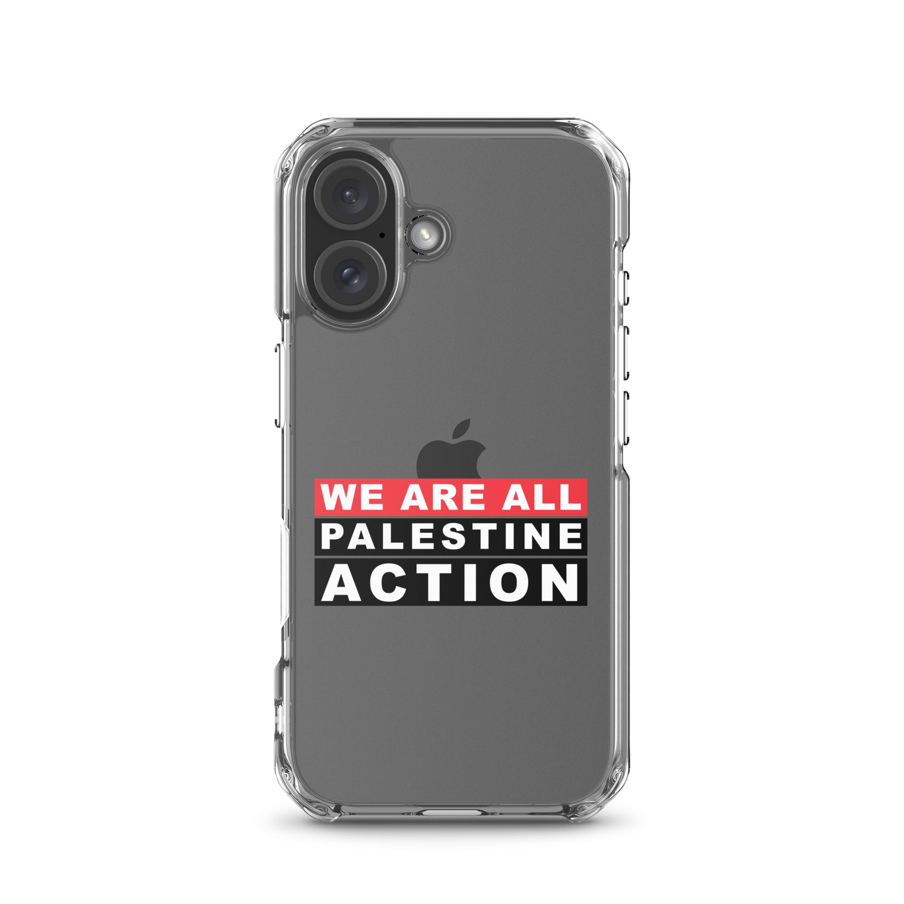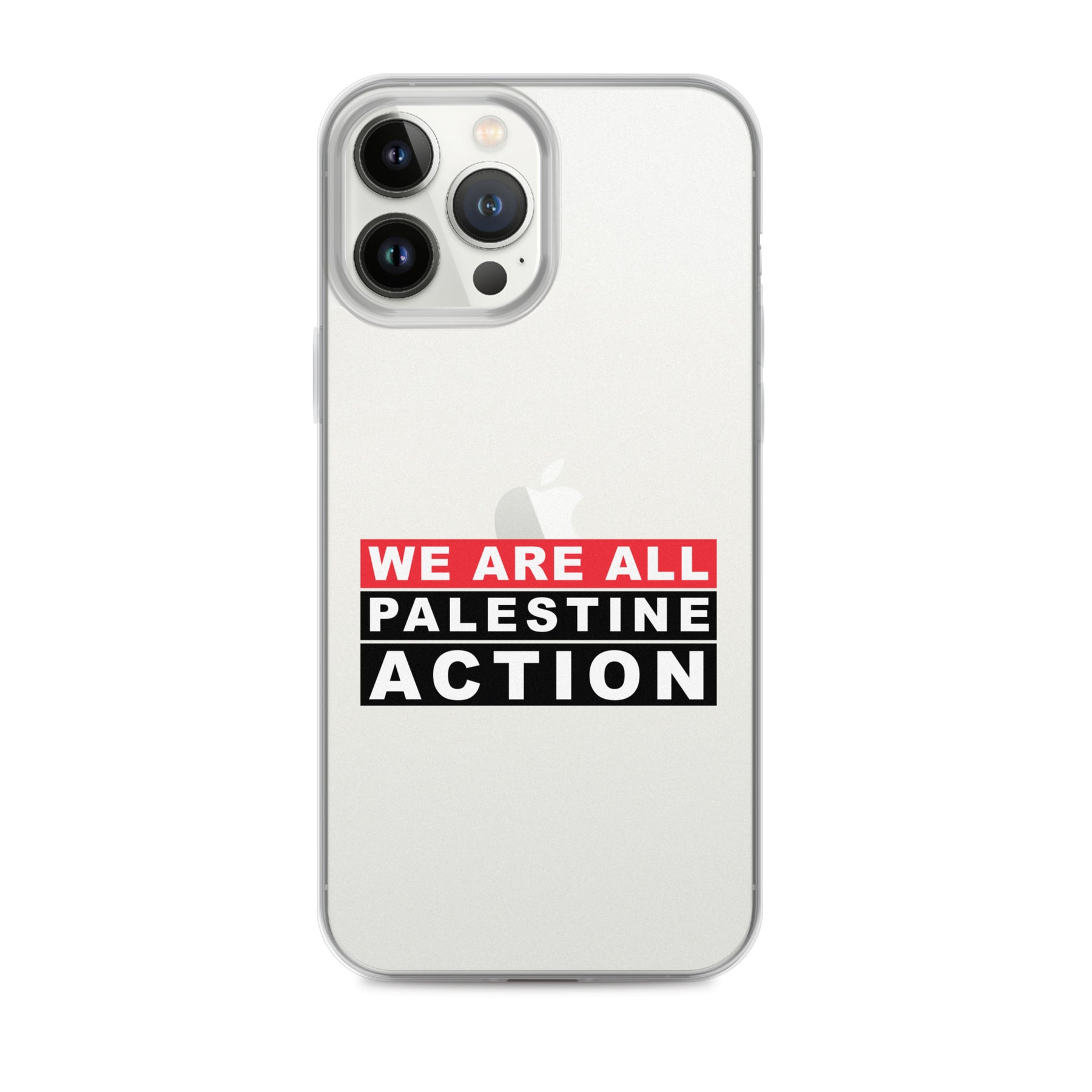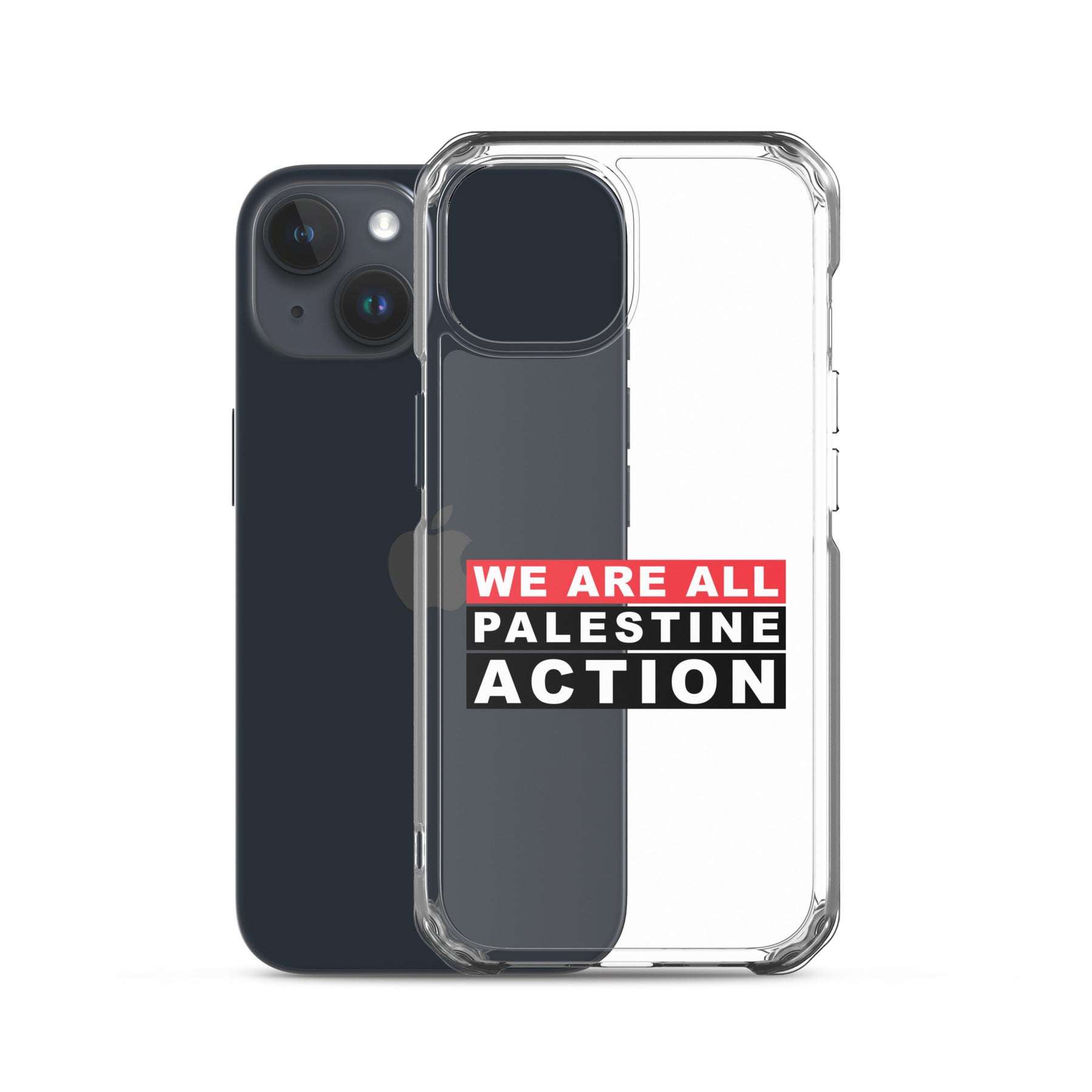This clear case for iPhone® doesn’t hide your phone—or your politics. Featuring the unapologetic message “We Are All Palestine Action,” it stands in solidarity with the people of Palestine, supporting the call to end occupation and oppression.