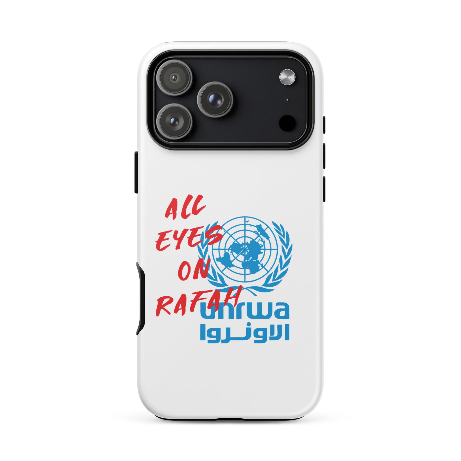 This tough iPhone® case features the powerful message: All Eyes on Rafah—a global call to witness, remember, and resist. With dual-layer protection against drops and scratches, it’s built to guard your device while refusing to stay silent. Because the world must see. And you won’t look away. Free Palestine.