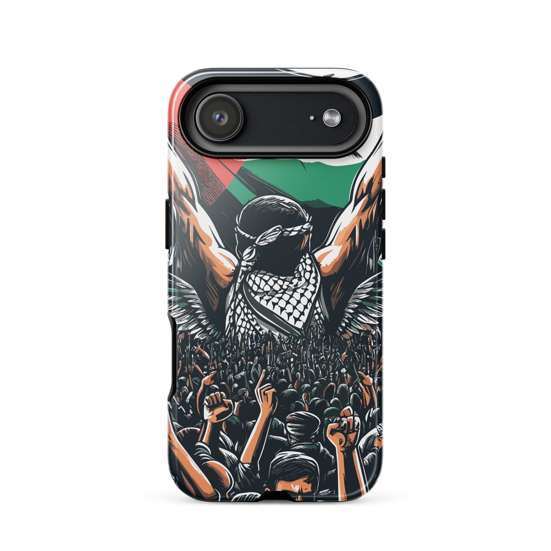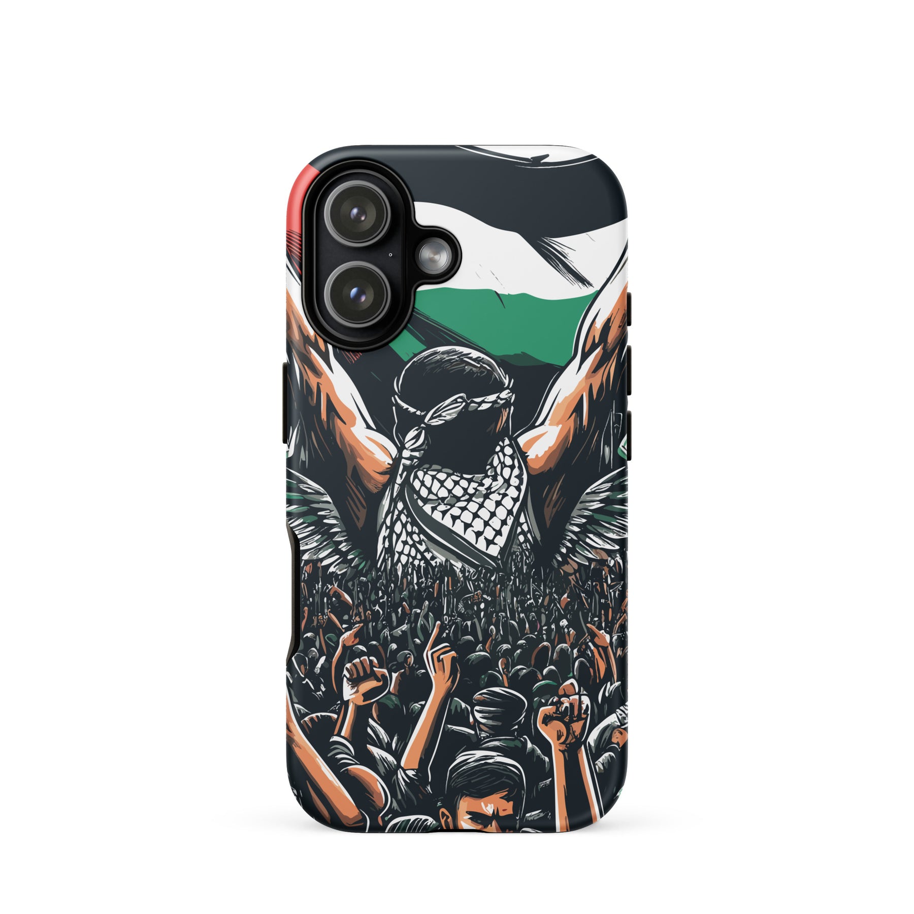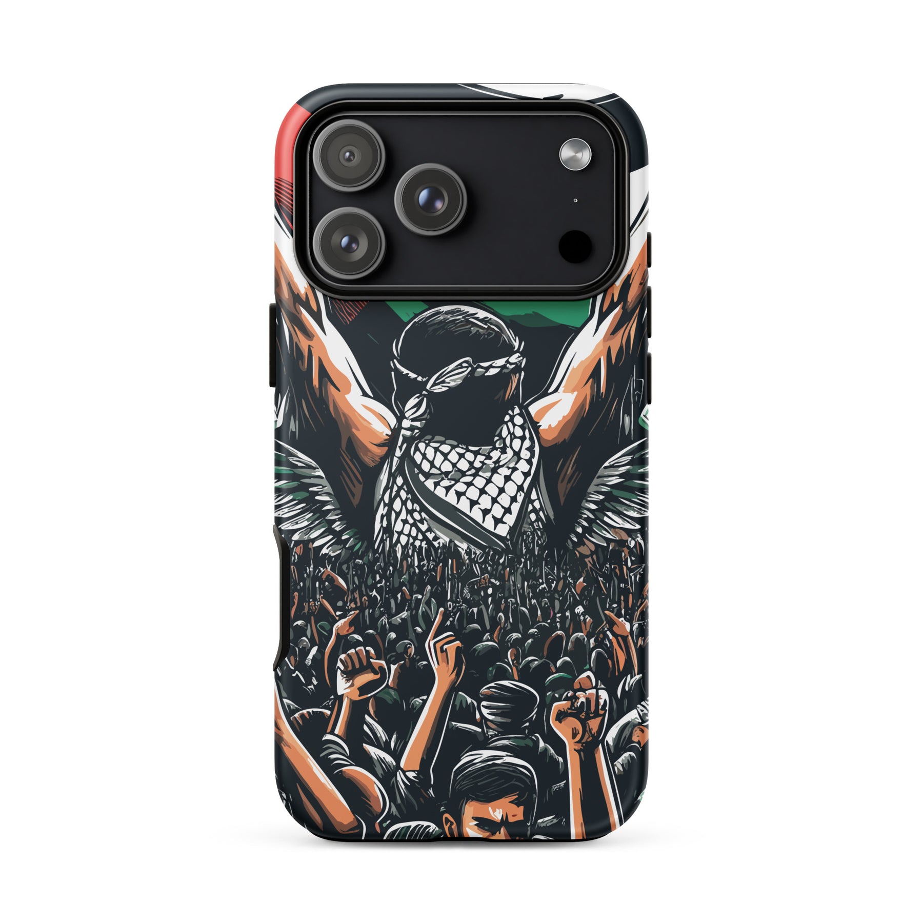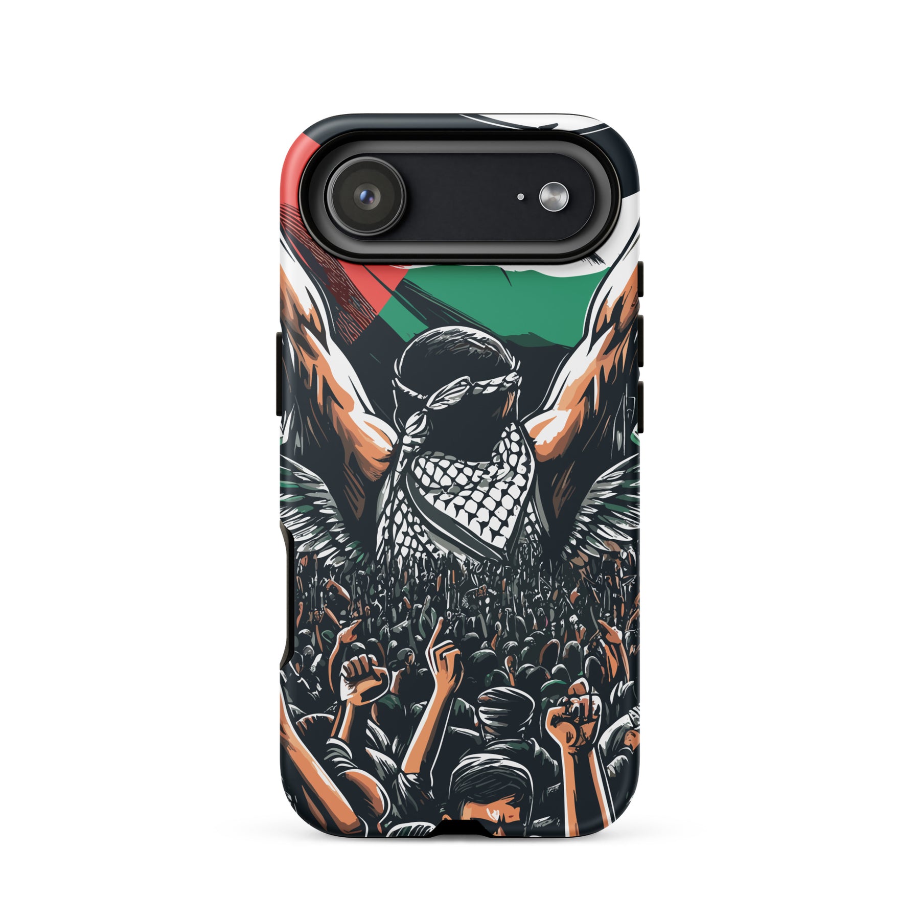 This tough iPhone® case features exclusive artwork by Moh, blending bold visuals with the soul of the Palestinian struggle. With dual-layer protection and a smooth, scratch-resistant finish, it keeps your phone safe while turning it into a canvas of resistance.