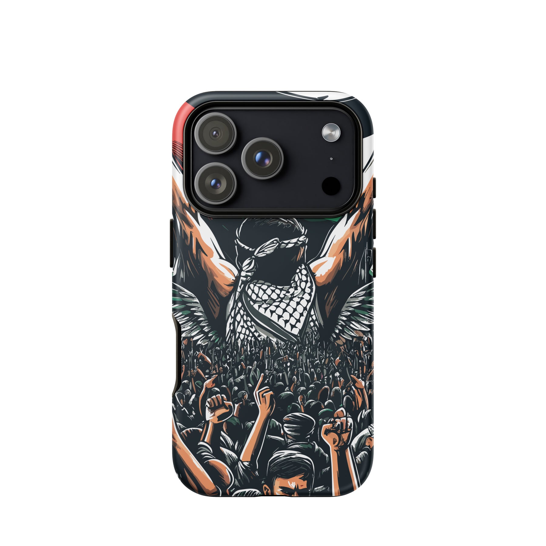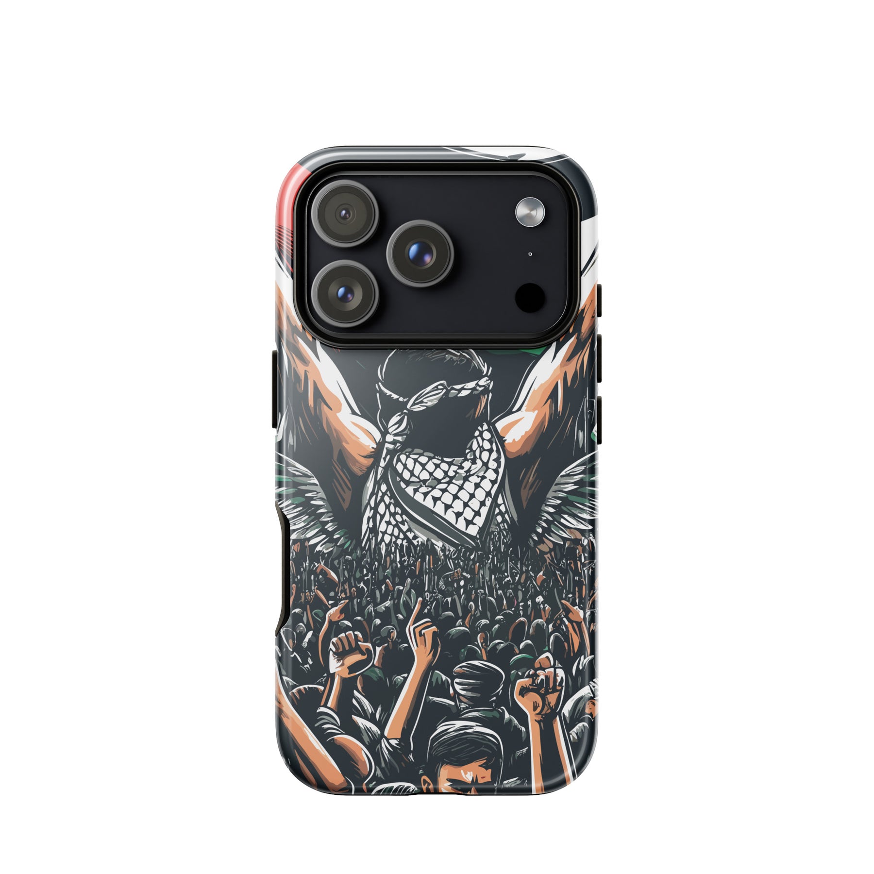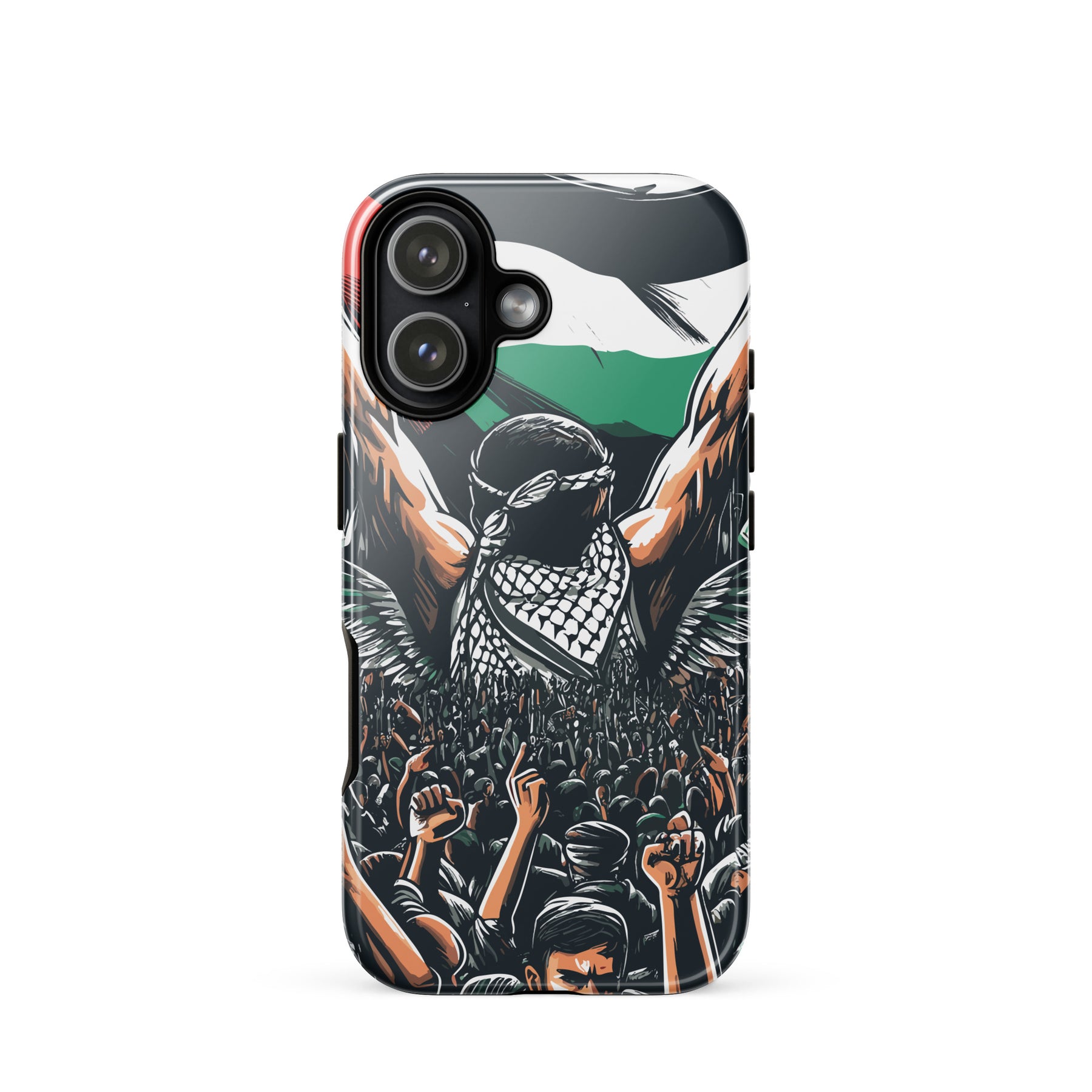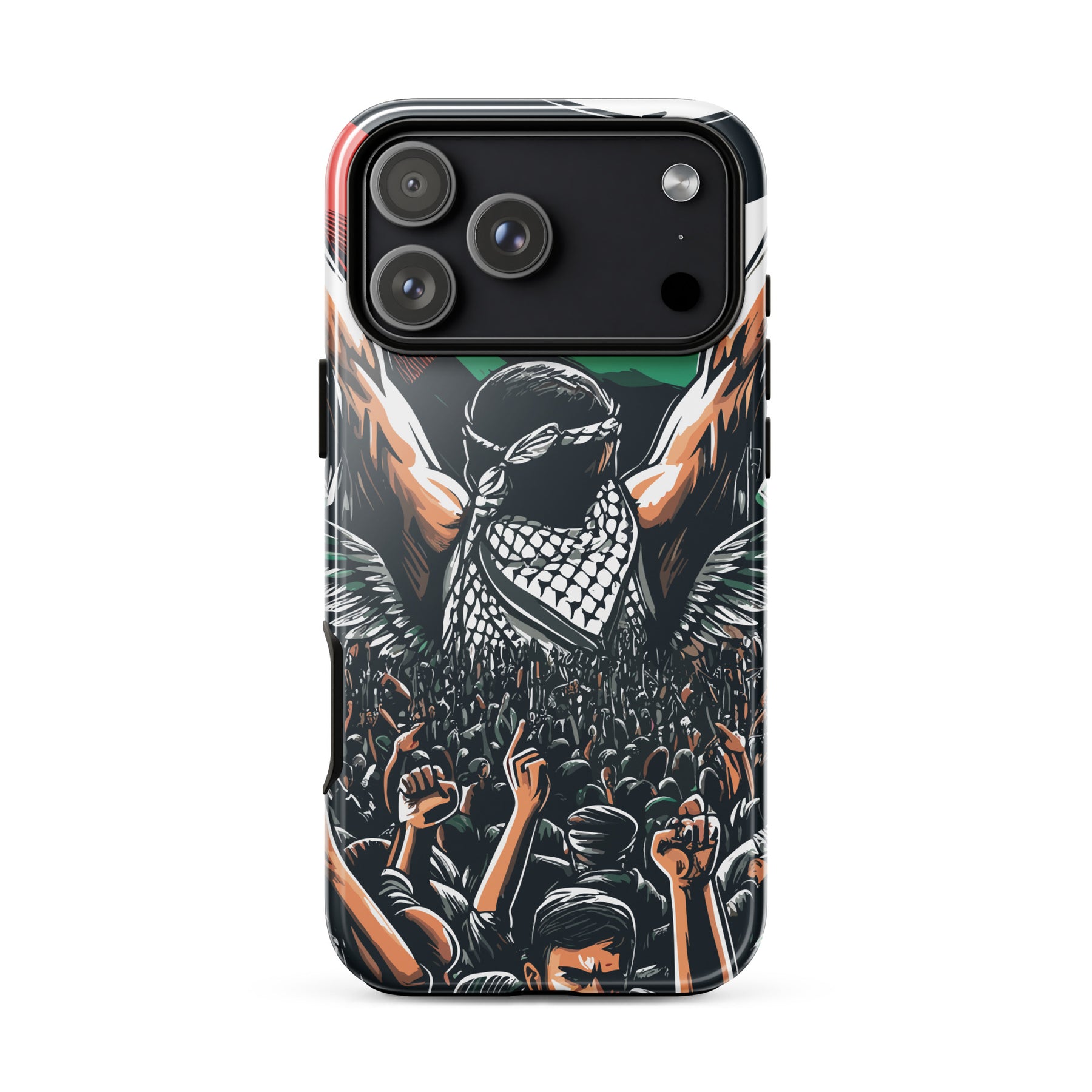 This tough iPhone® case features exclusive artwork by Moh, blending bold visuals with the soul of the Palestinian struggle. With dual-layer protection and a smooth, scratch-resistant finish, it keeps your phone safe while turning it into a canvas of resistance.