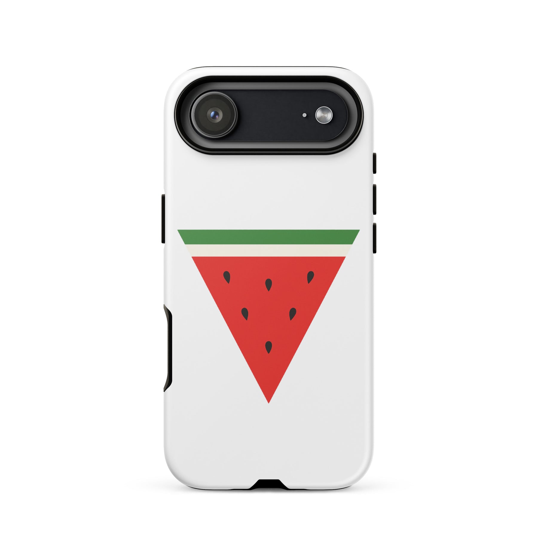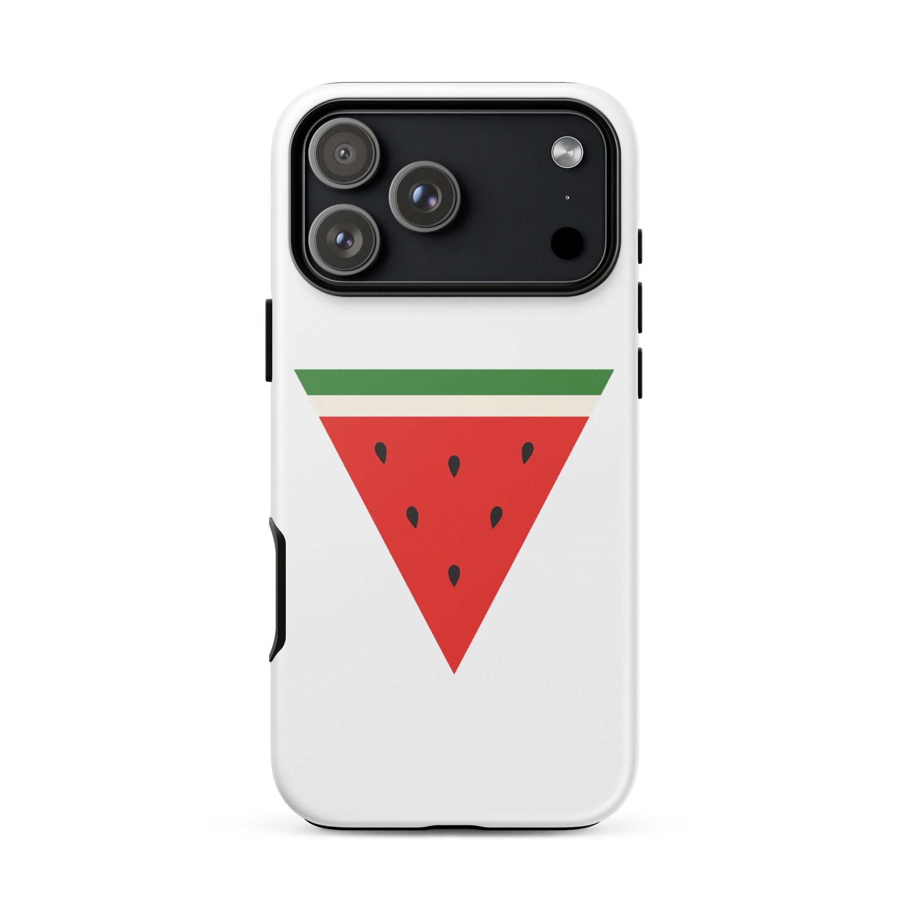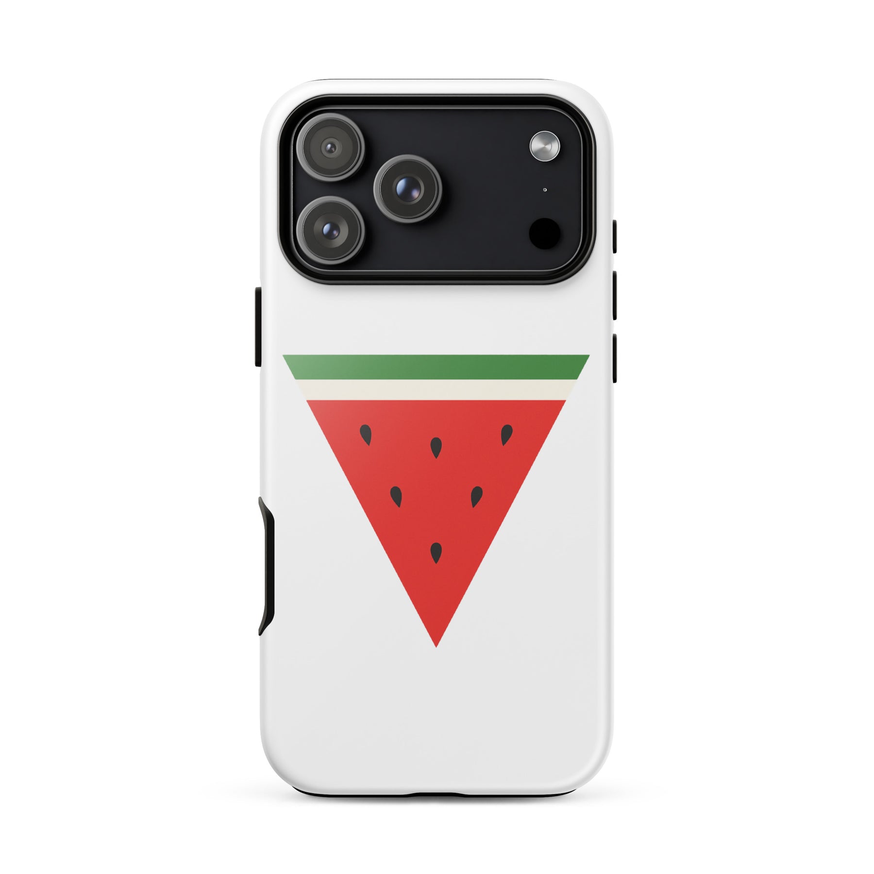 This tough iPhone® case features the Triangle Watermelon—a creative nod to Palestinian resistance, turning a banned flag into a bold visual symbol. With a dual-layer build for serious drop protection and a vibrant, scratch-resistant finish, it’s made to protect your phone while standing for something bigger. Because symbols speak loud—especially when they’re shaped like truth. Free Palestine.