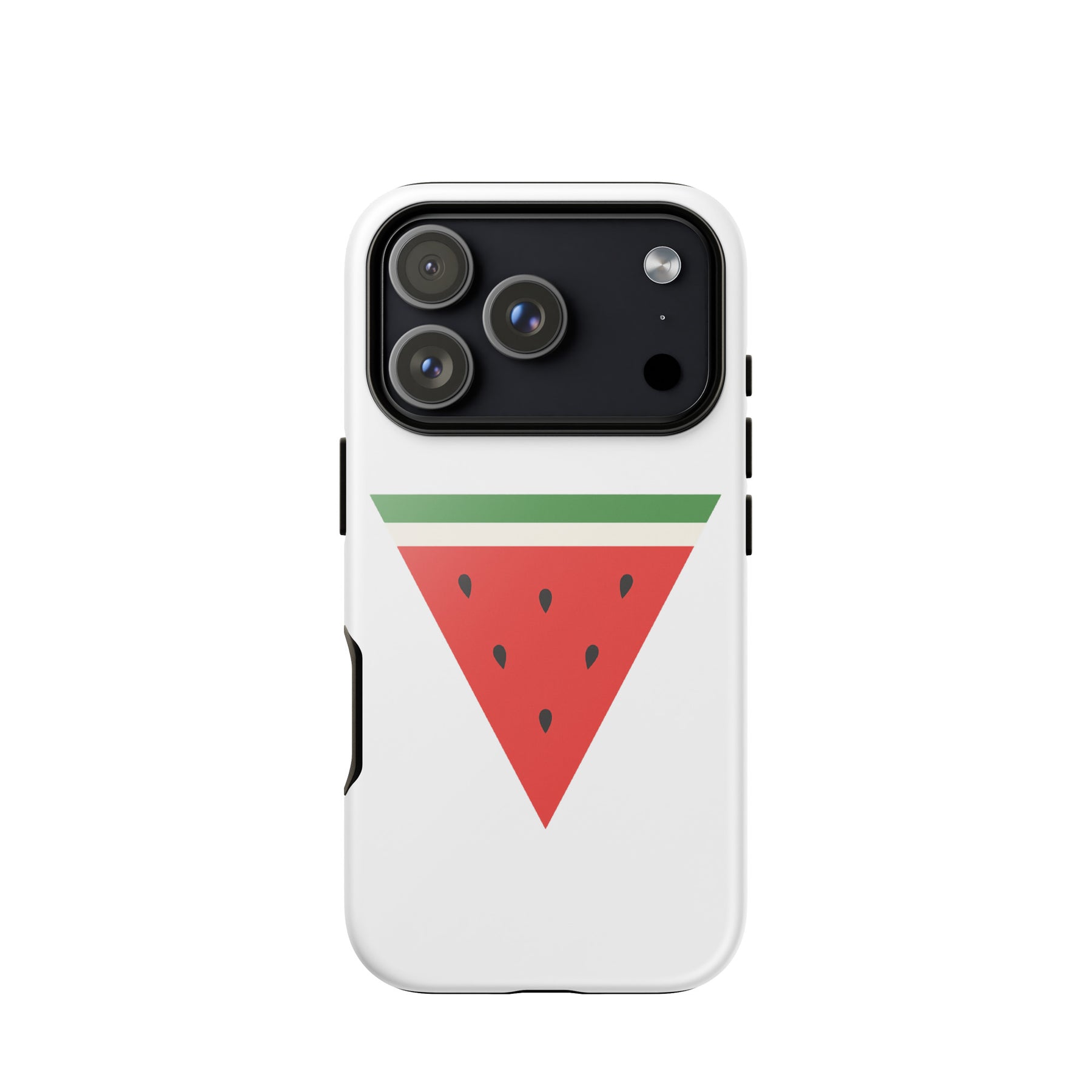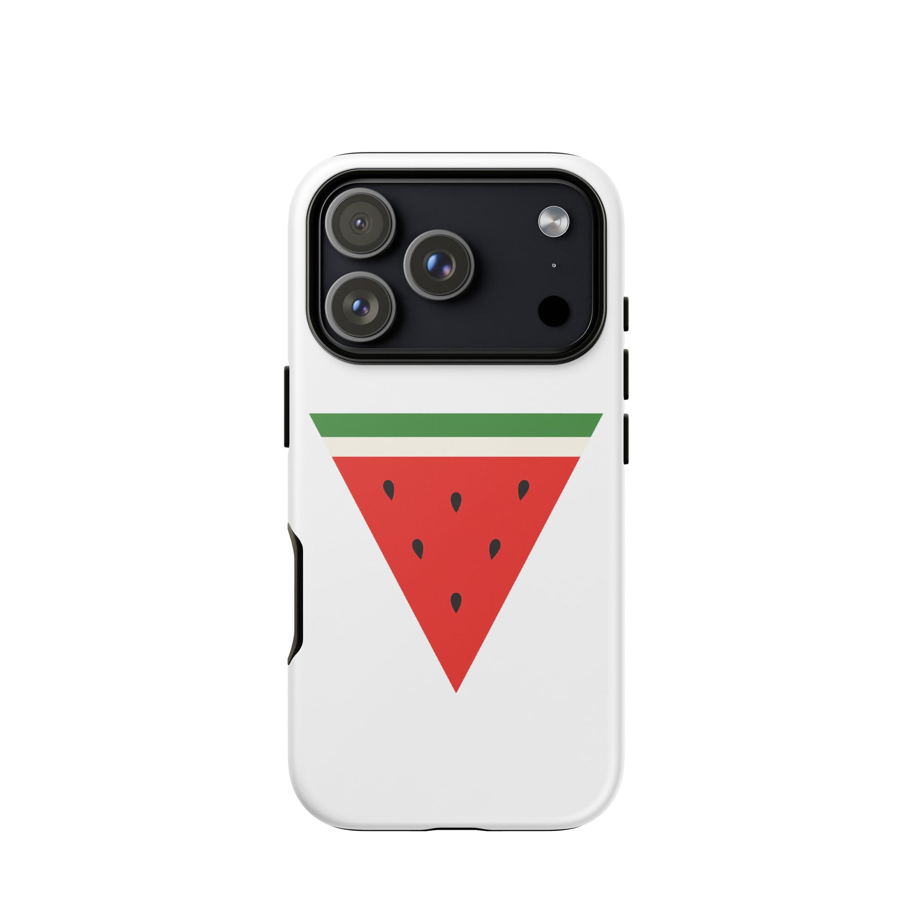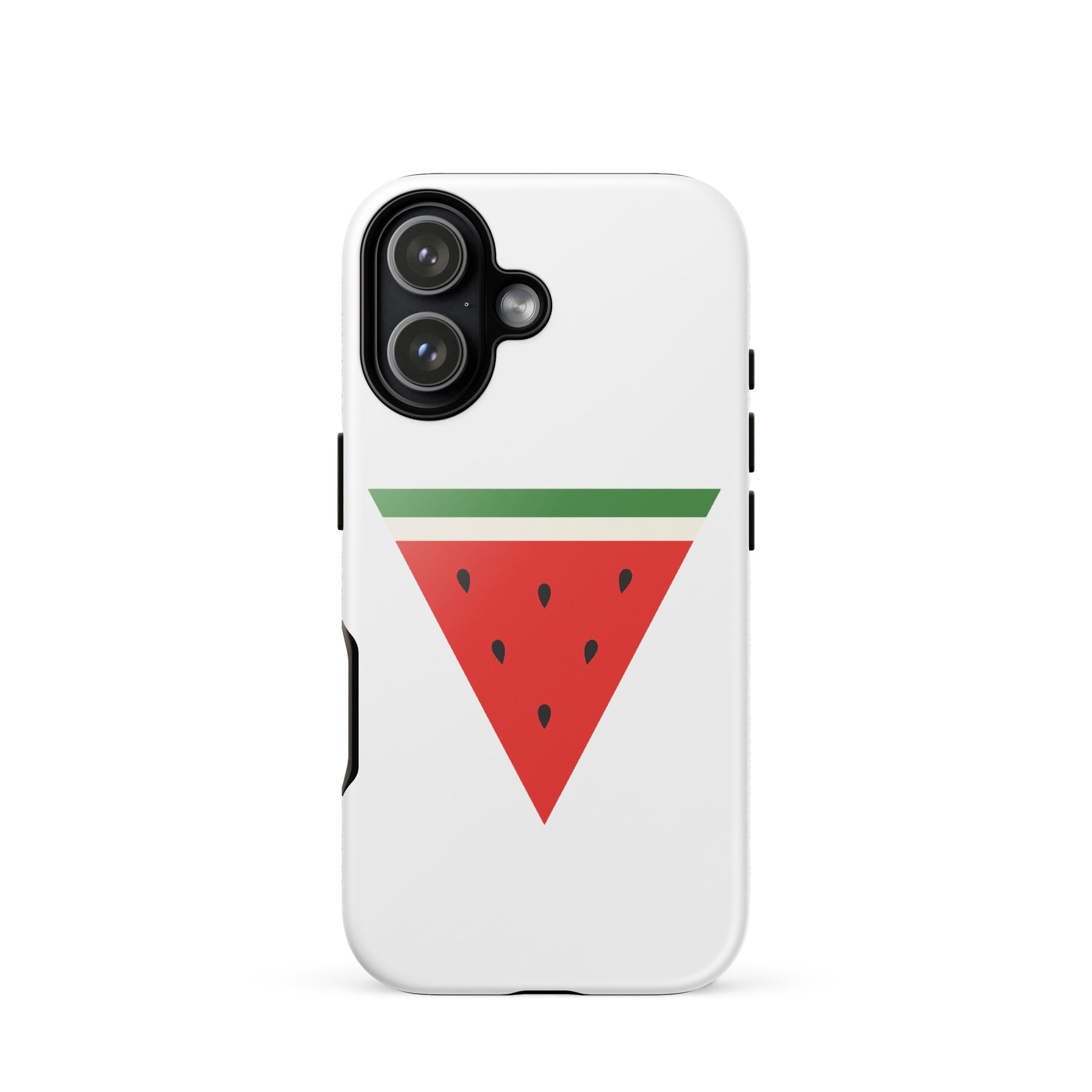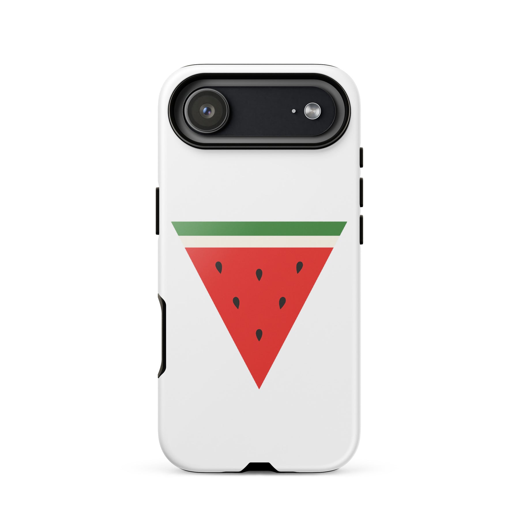 This tough iPhone® case features the Triangle Watermelon—a creative nod to Palestinian resistance, turning a banned flag into a bold visual symbol. With a dual-layer build for serious drop protection and a vibrant, scratch-resistant finish, it’s made to protect your phone while standing for something bigger. Because symbols speak loud—especially when they’re shaped like truth. Free Palestine.