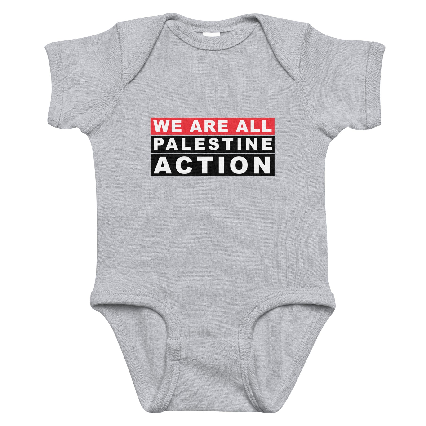 This pro-Palestinian baby onesie blends softness with purpose. With “We Are All Palestine Action” proudly printed, it shows your family’s stand with Gaza, resistance to the Israeli occupation, and support for justice from day one.