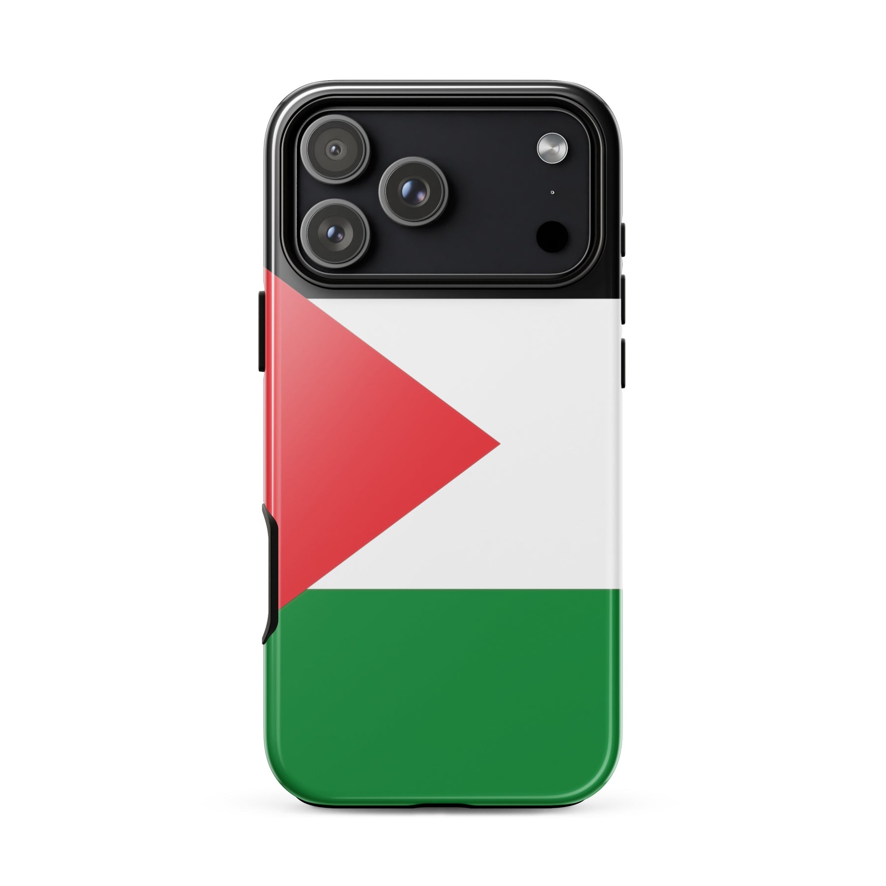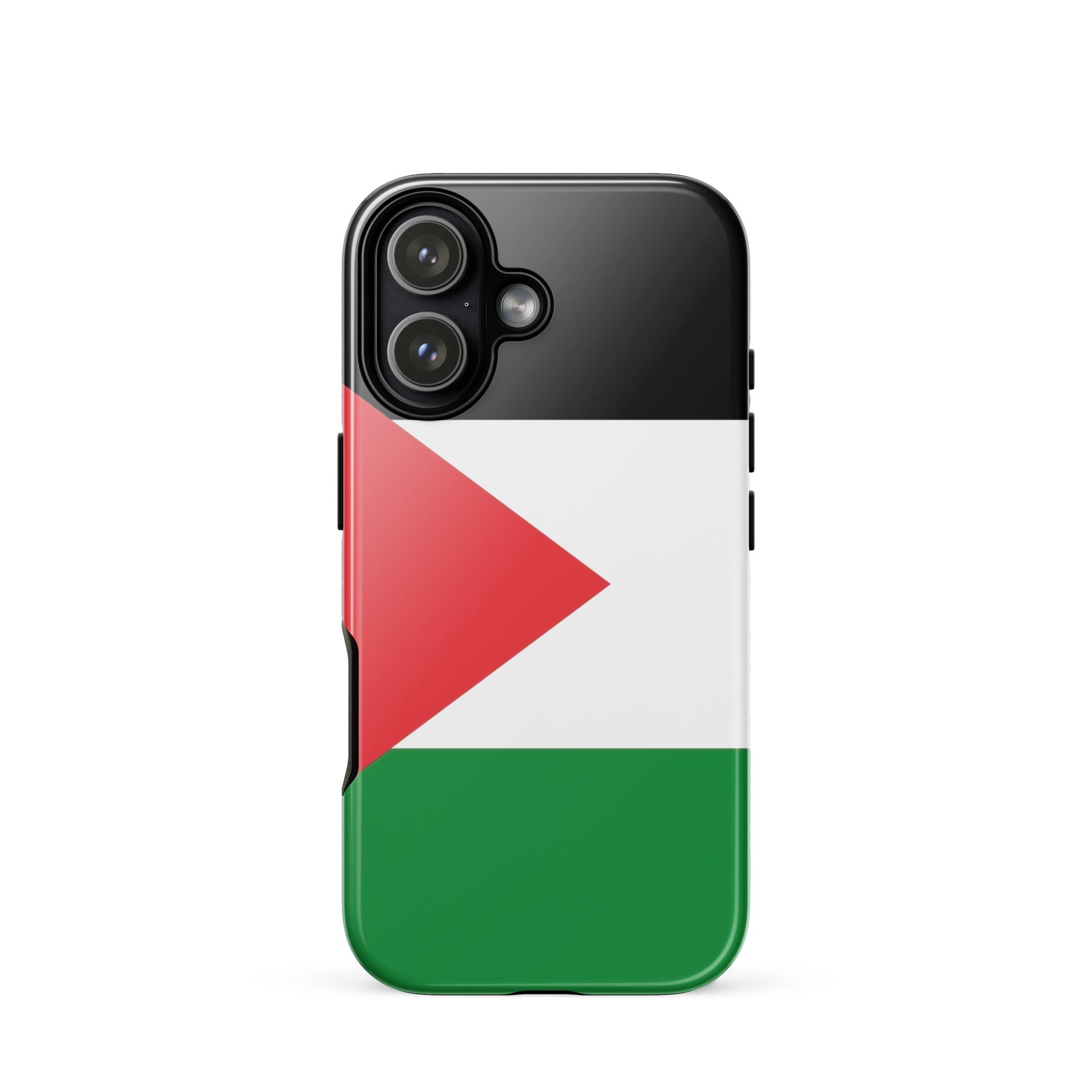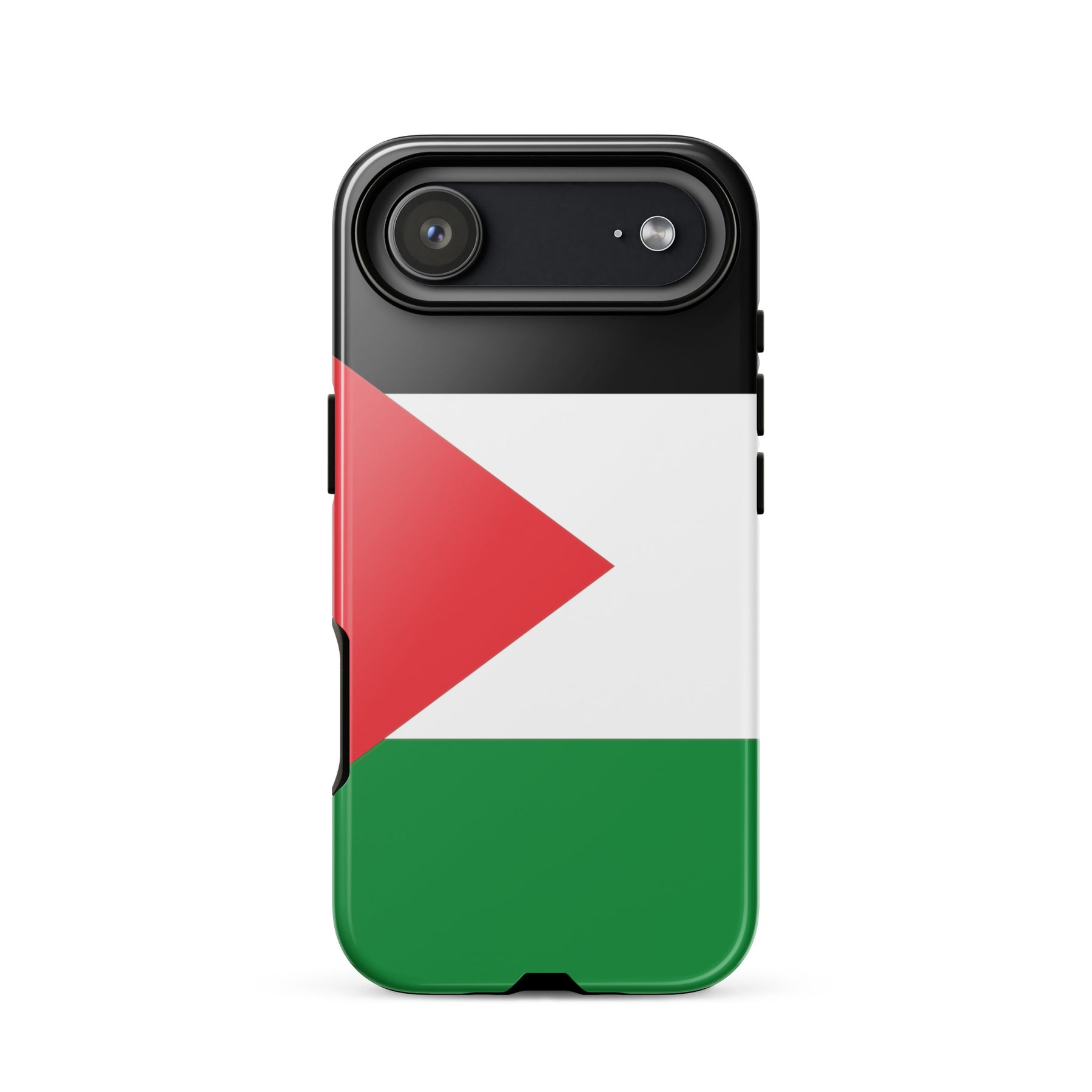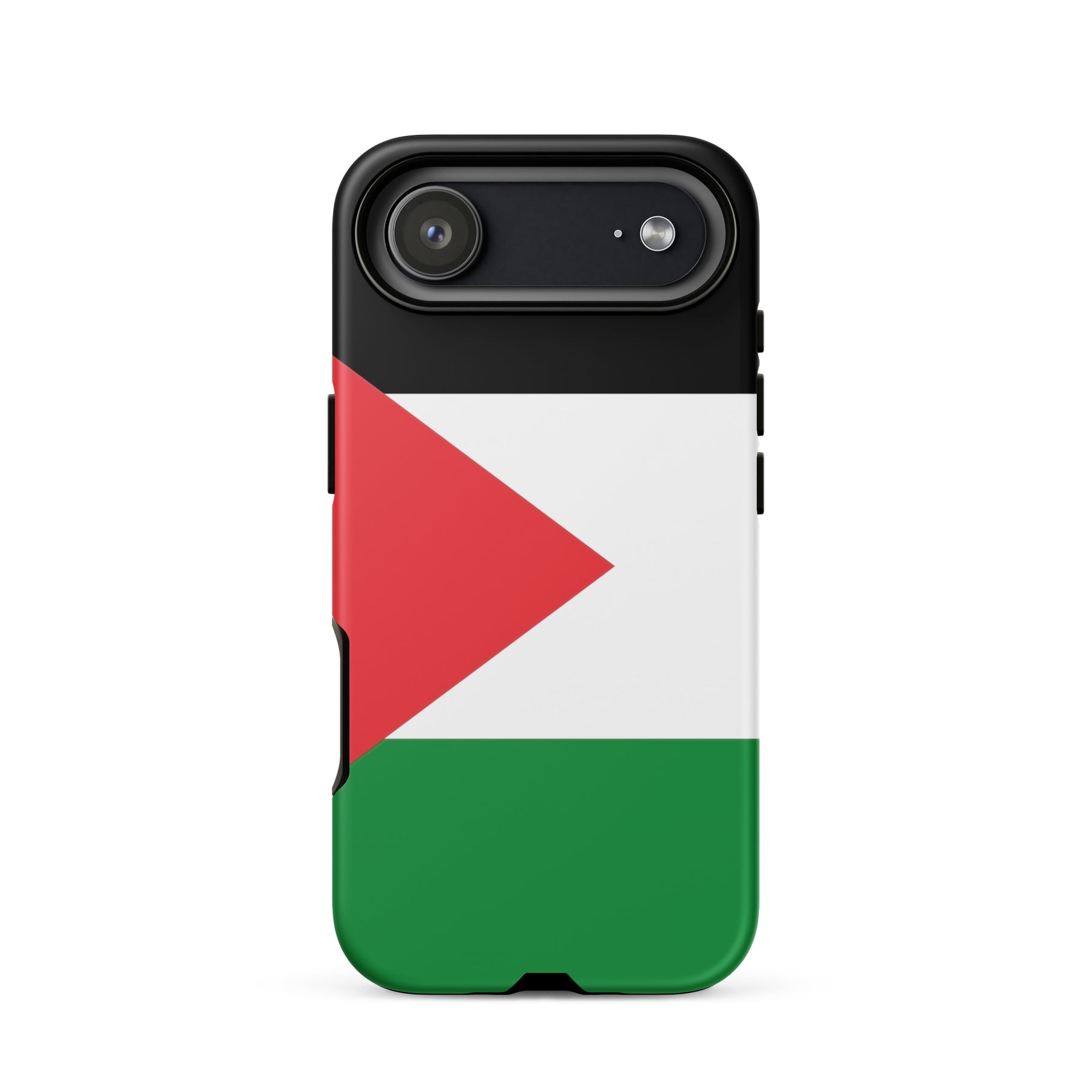 This tough iPhone® case features the bold and unmistakable Palestinian flag, standing tall as a symbol of resistance, identity, and hope. With a dual-layer design for serious drop protection and a smooth, scratch-resistant finish, it’s built to keep your phone safe—while keeping your message front and center. Because the flag belongs in your hands and in the fight. Free Palestine.