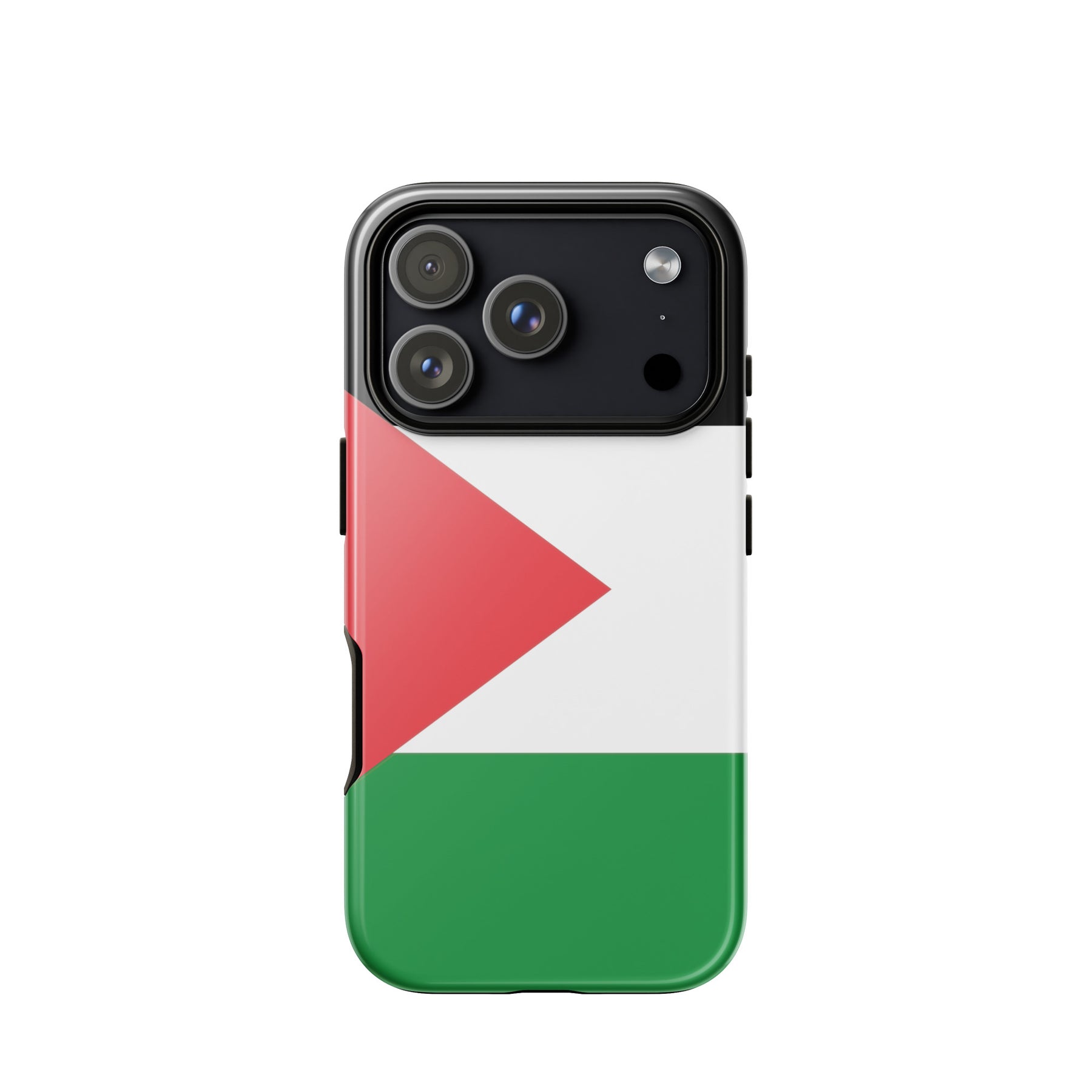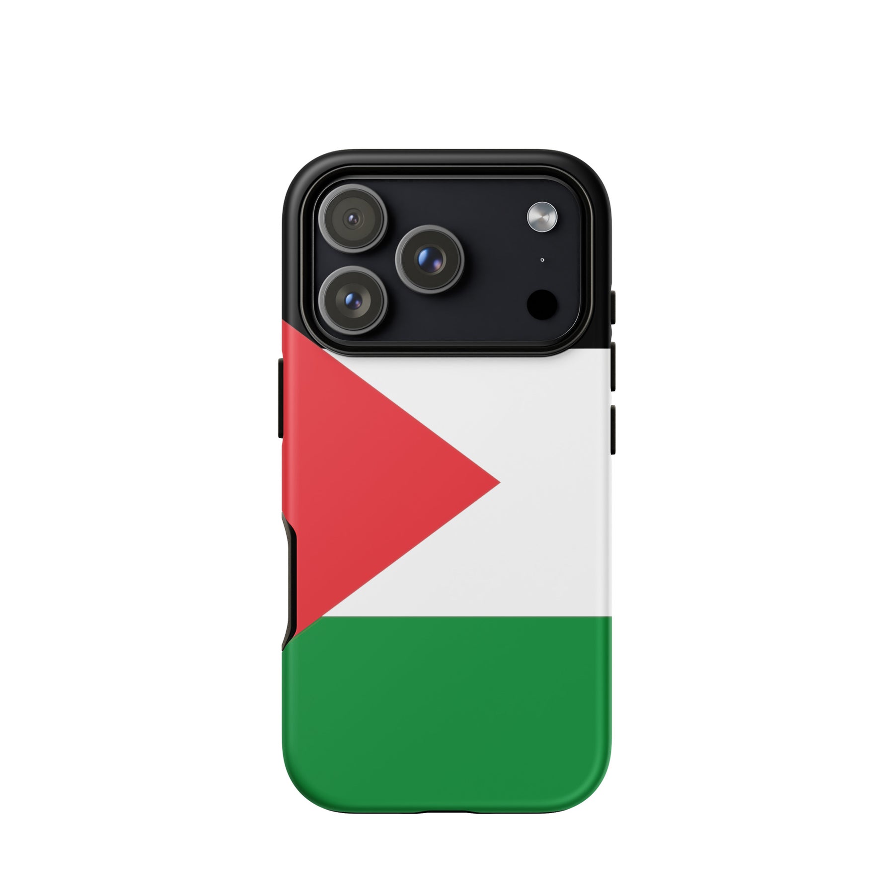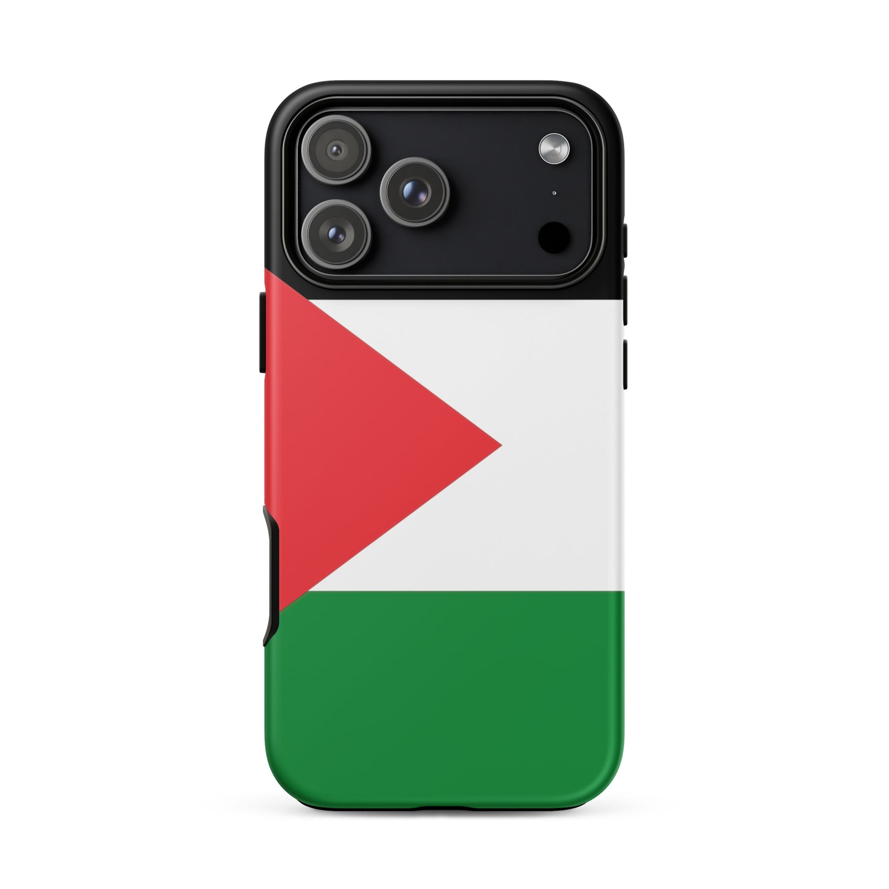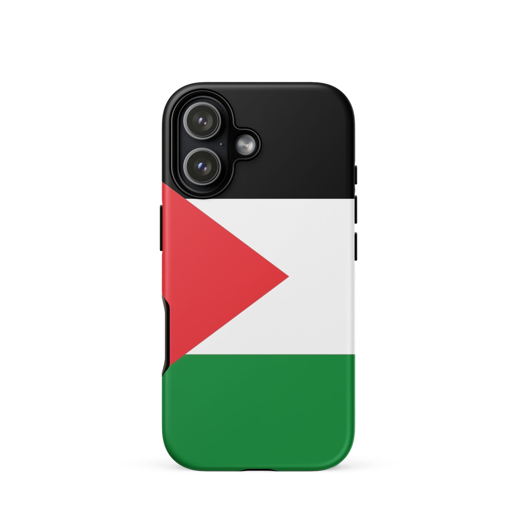 This tough iPhone® case features the bold and unmistakable Palestinian flag, standing tall as a symbol of resistance, identity, and hope. With a dual-layer design for serious drop protection and a smooth, scratch-resistant finish, it’s built to keep your phone safe—while keeping your message front and center. Because the flag belongs in your hands and in the fight. Free Palestine.