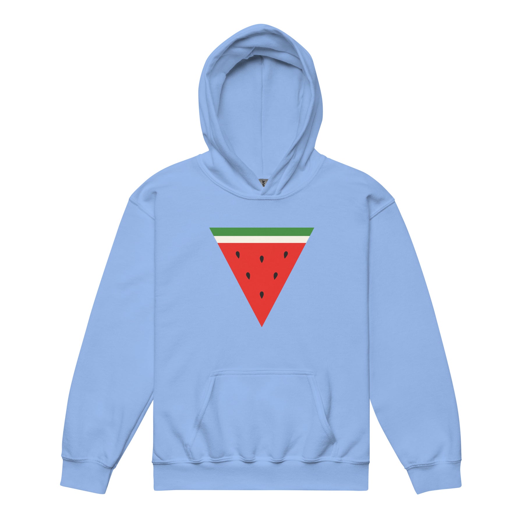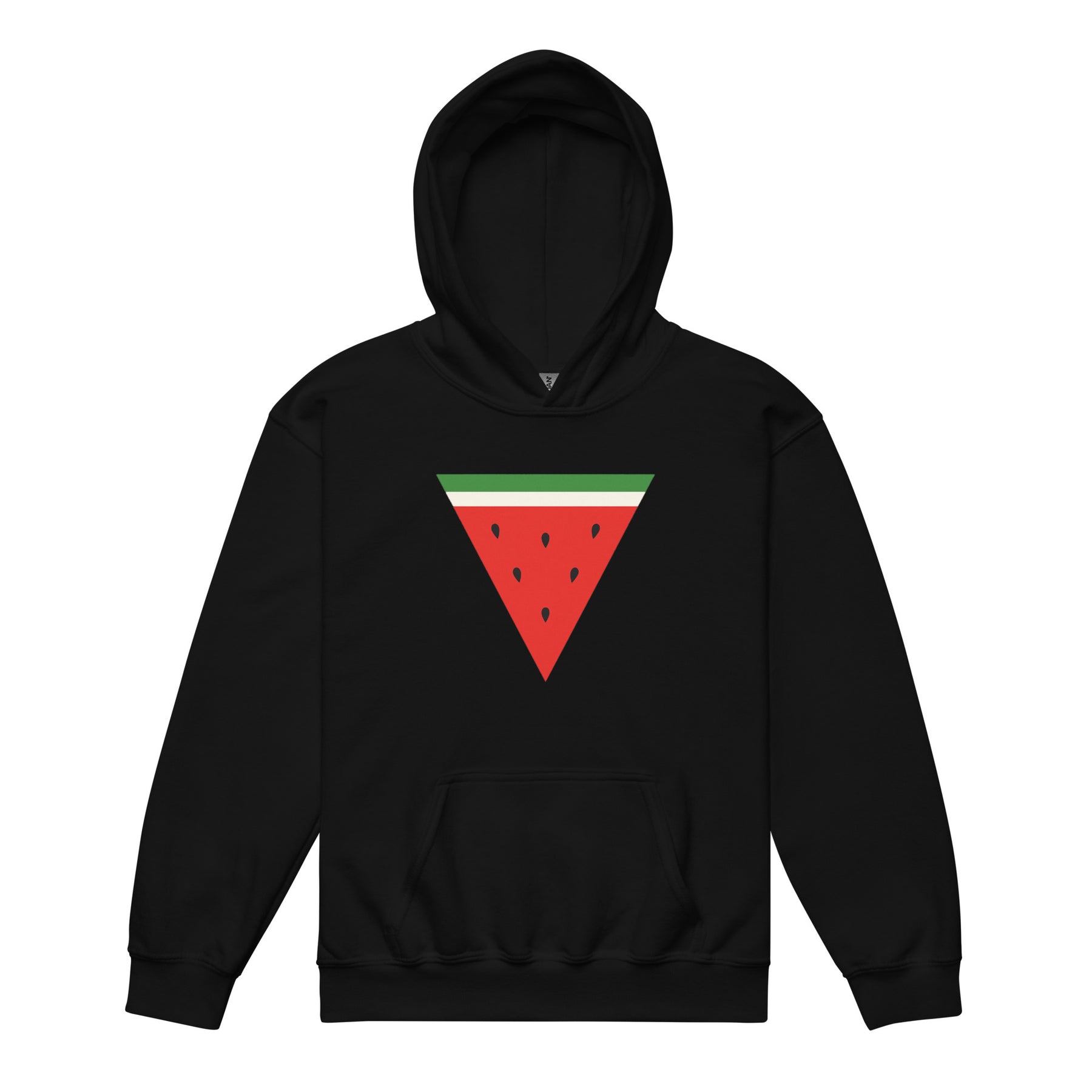 This ultra-comfy youth hoodie features the eye-catching Triangle Watermelon design—an iconic nod to Palestinian resistance when the flag was banned. Soft on the inside and strong in its message, it’s perfect for school, hangouts, or standing proud in any setting. Because even everyday outfits can carry powerful stories.