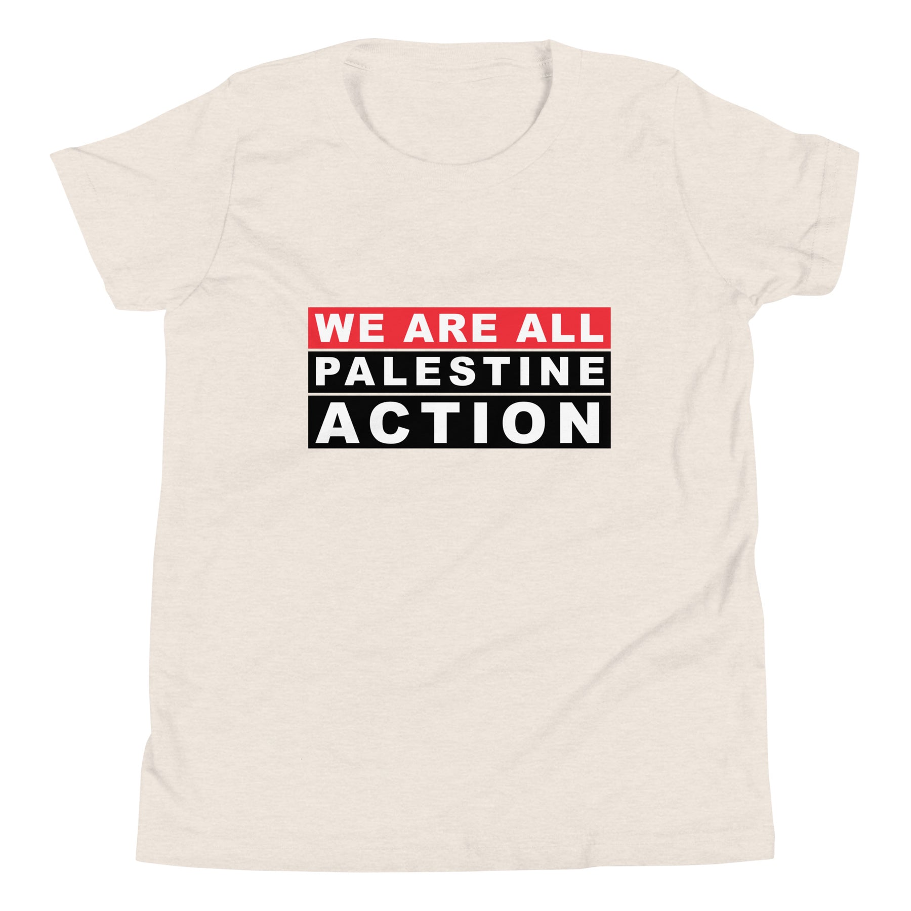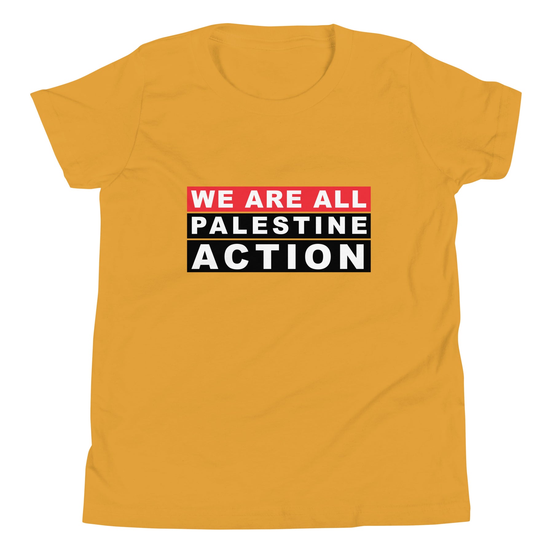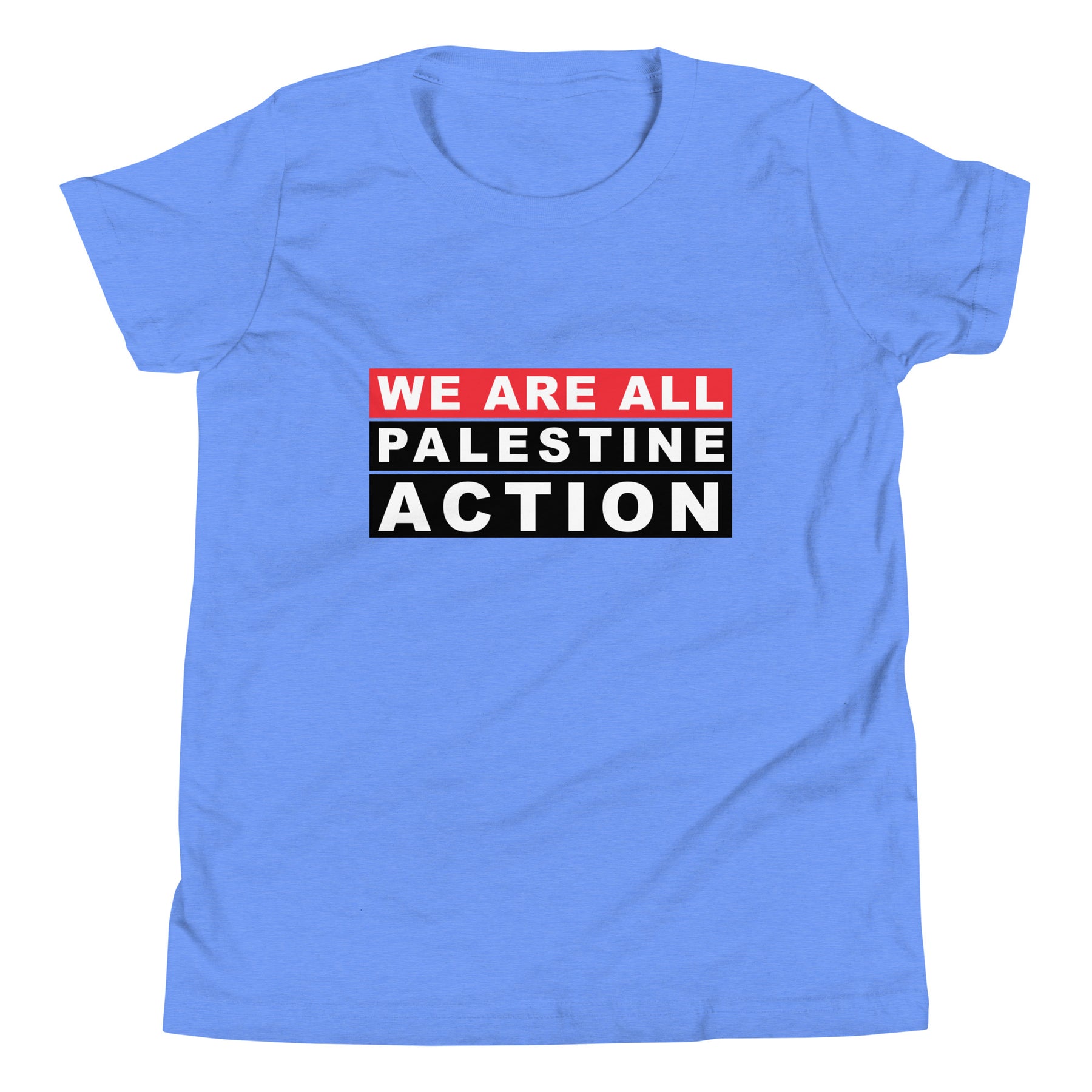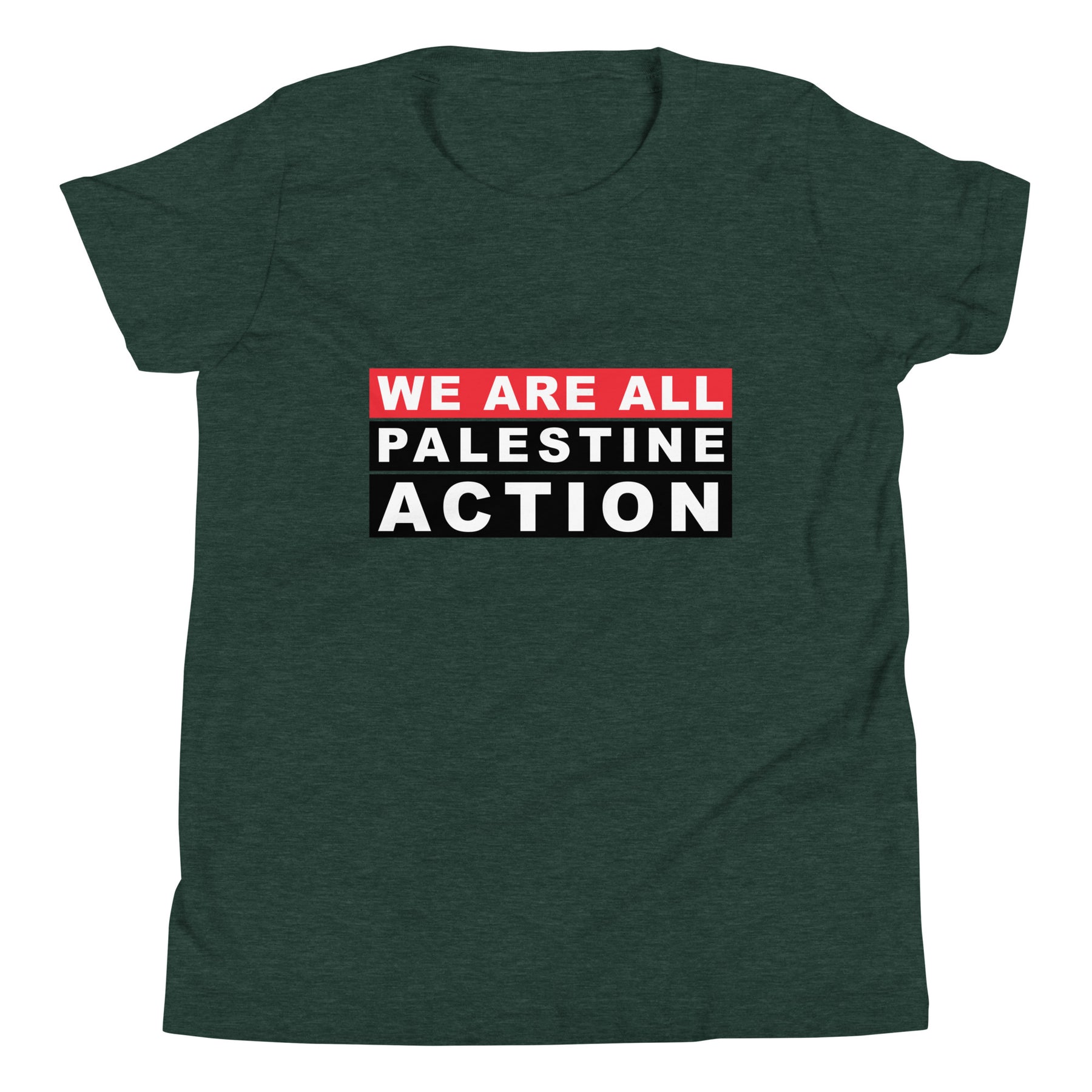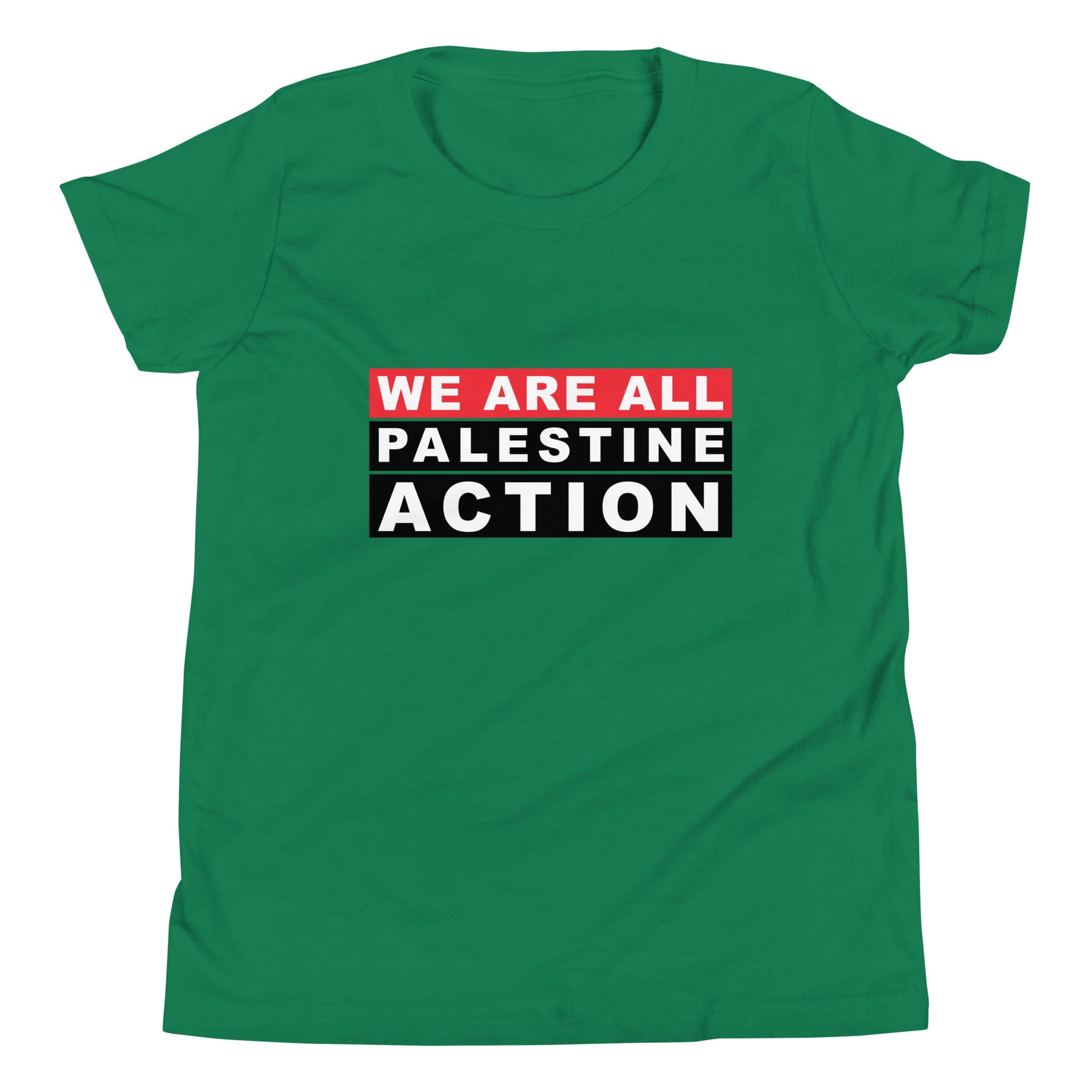 Designed for young hearts with strong convictions, this pro-Palestinian youth T-shirt boldly declares: “We Are All Palestine Action.” Whether it’s for a school event, social media post, or community action—it lets youth wear their values and amplify the call for justice in Palestine.