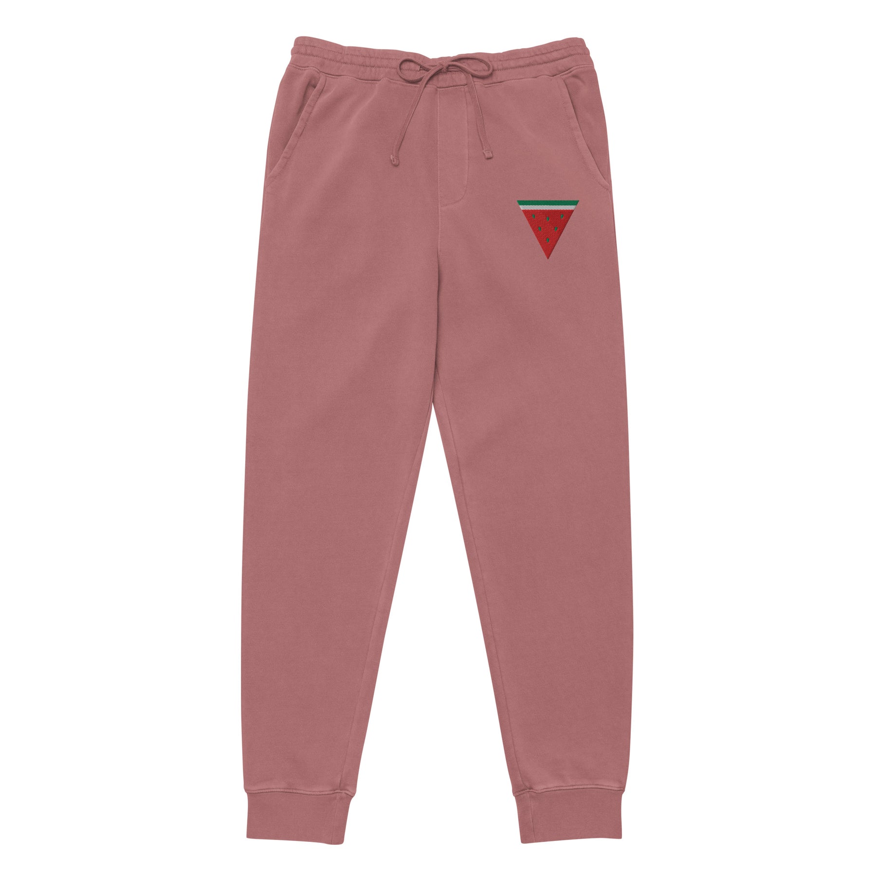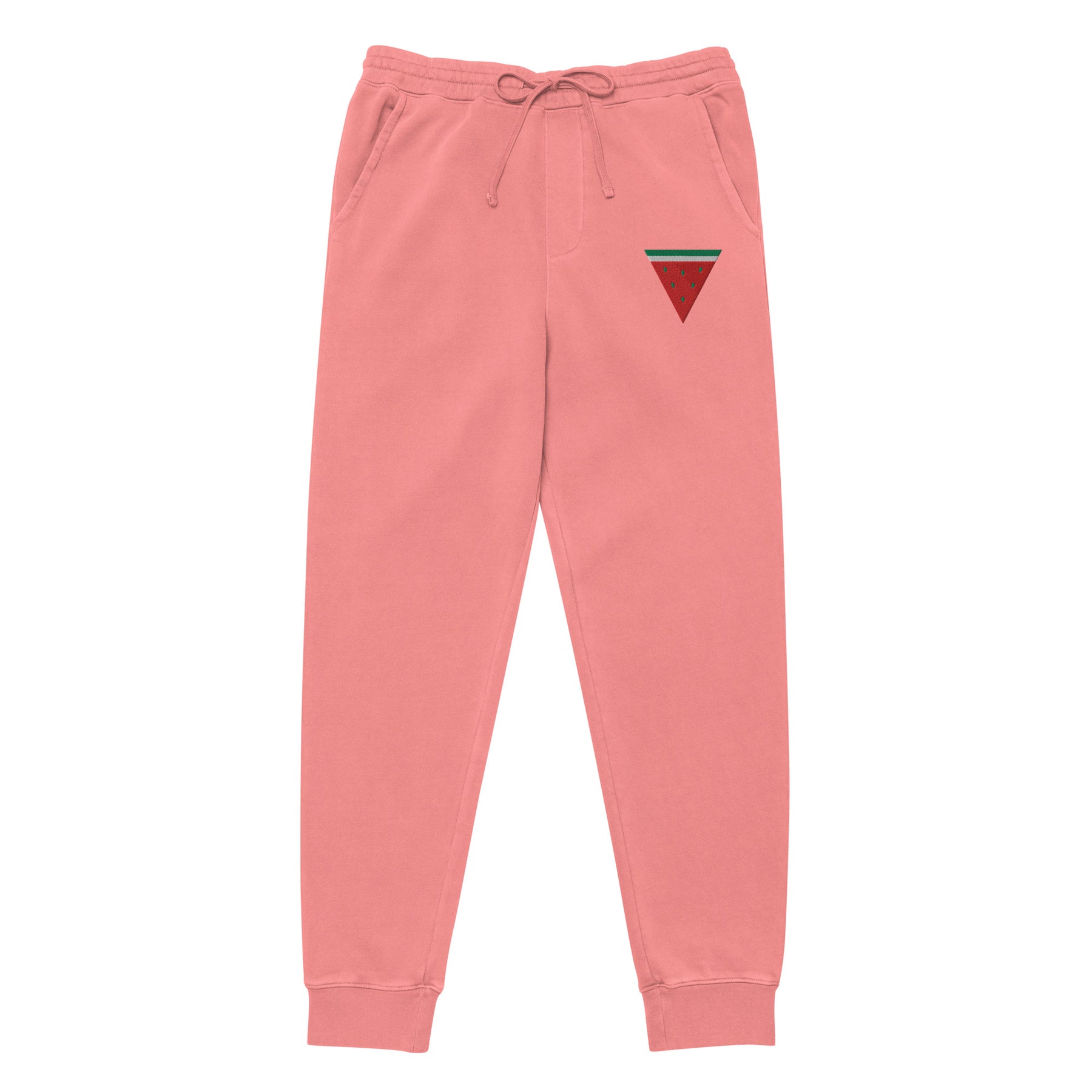 These pigment-dyed sweatpants deliver relaxed vibes with a bold message. Featuring the subtle yet powerful Triangle Watermelon design—a nod to Palestinian resistance—each pair is as unique as the cause it represents. With a vintage-washed look and all-day comfort, they make sure your chill never comes at the cost of silence. Because even rest can be radical.