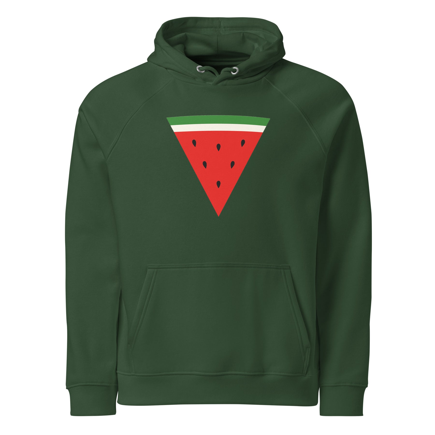 Celebrate identity with purpose. This eco-friendly hoodie features the iconic triangle watermelon—a creative symbol of Palestinian resilience. Made from organic cotton and recycled materials, it’s as comfortable as it is meaningful. Ideal for everyday wear that makes a quiet yet unwavering statement.