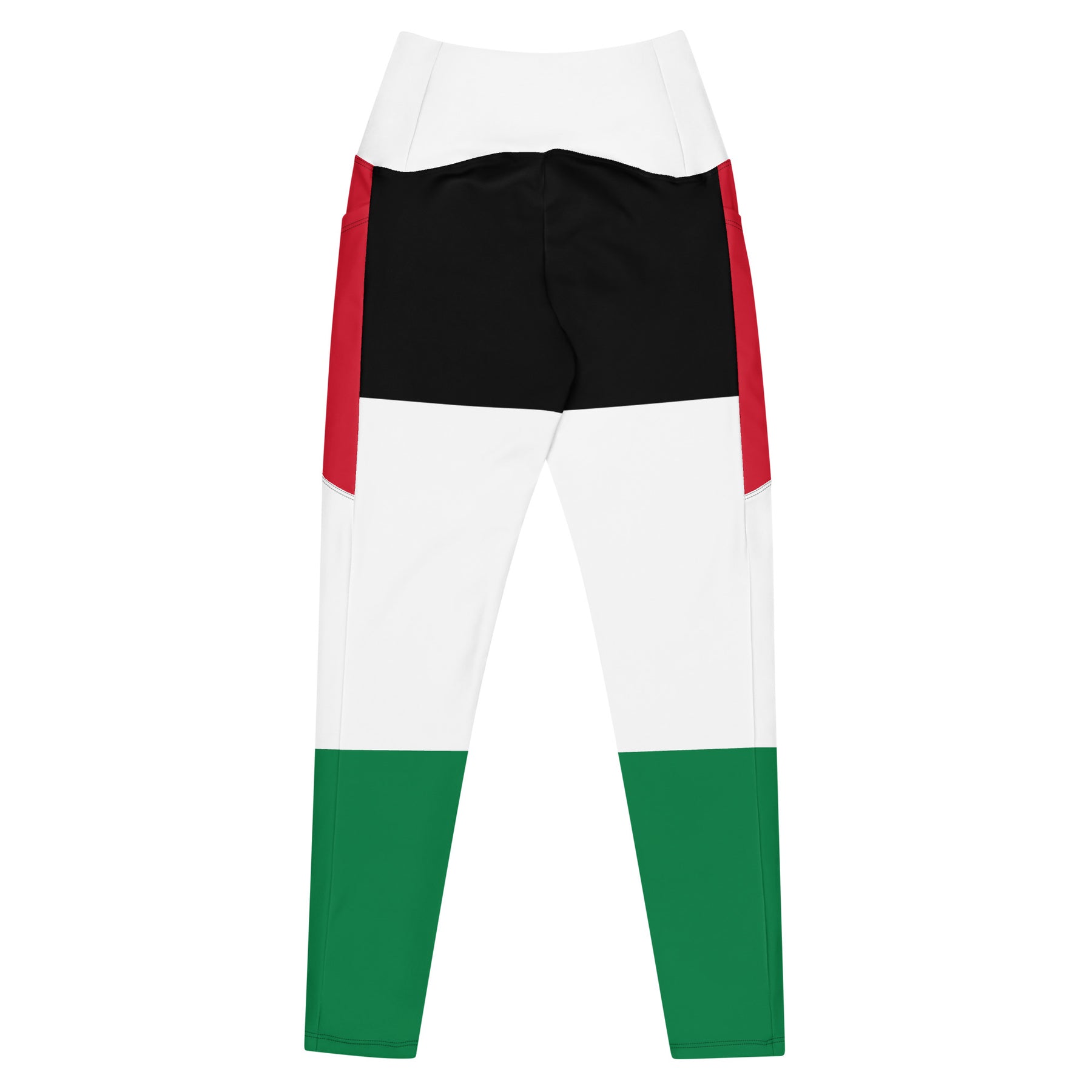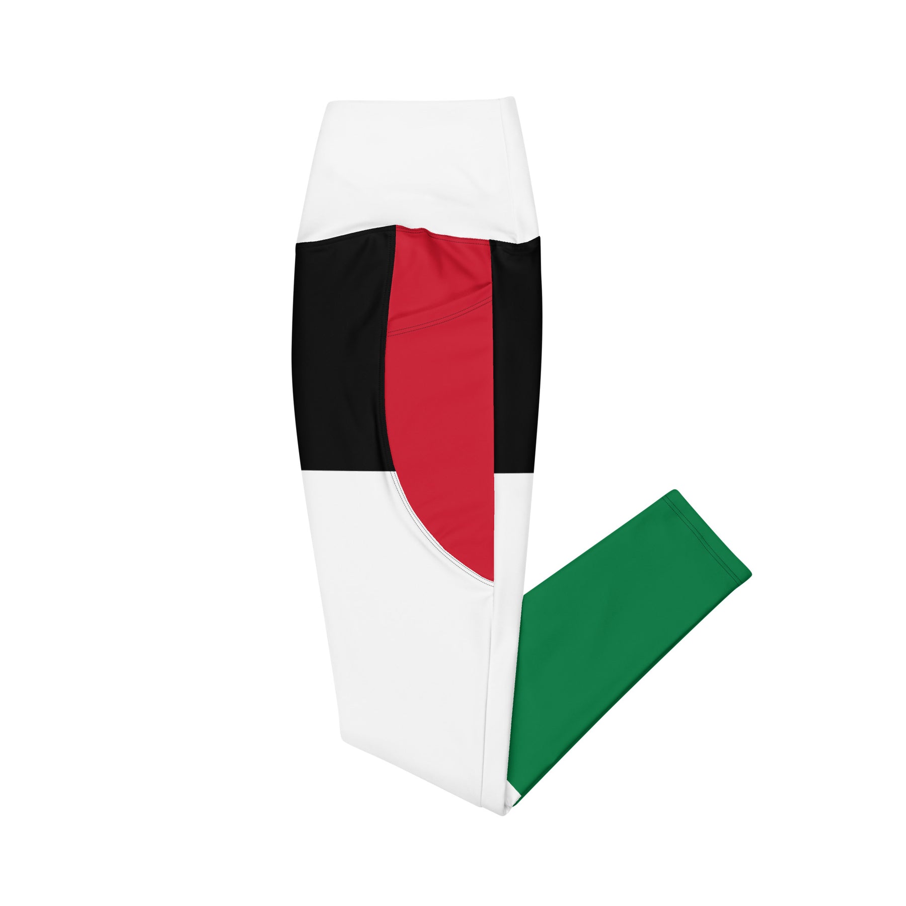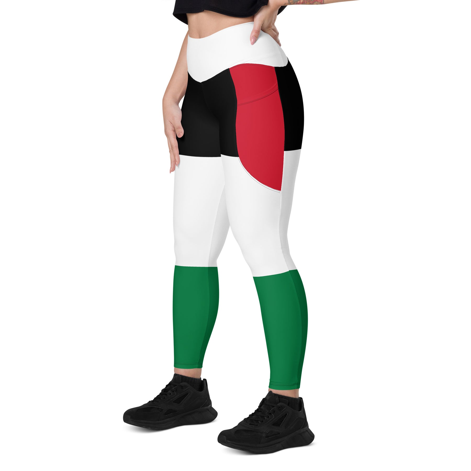 These high-waisted leggings feature deep side pockets and a bold Palestinian flag design—bringing movement, meaning, and everyday resistance together. Soft, stretchy, and built for action, they’re perfect for workouts, errands, or making a quiet stand with every step. Because pride doesn’t need to be loud to be powerful. Free Palestine.