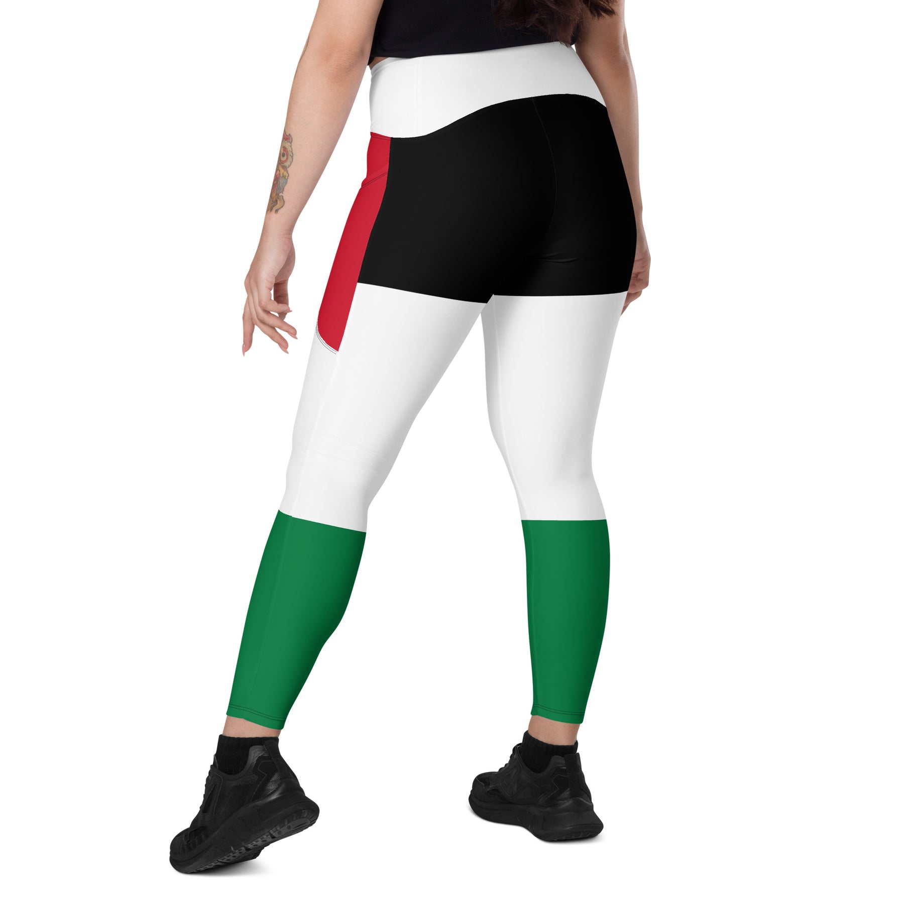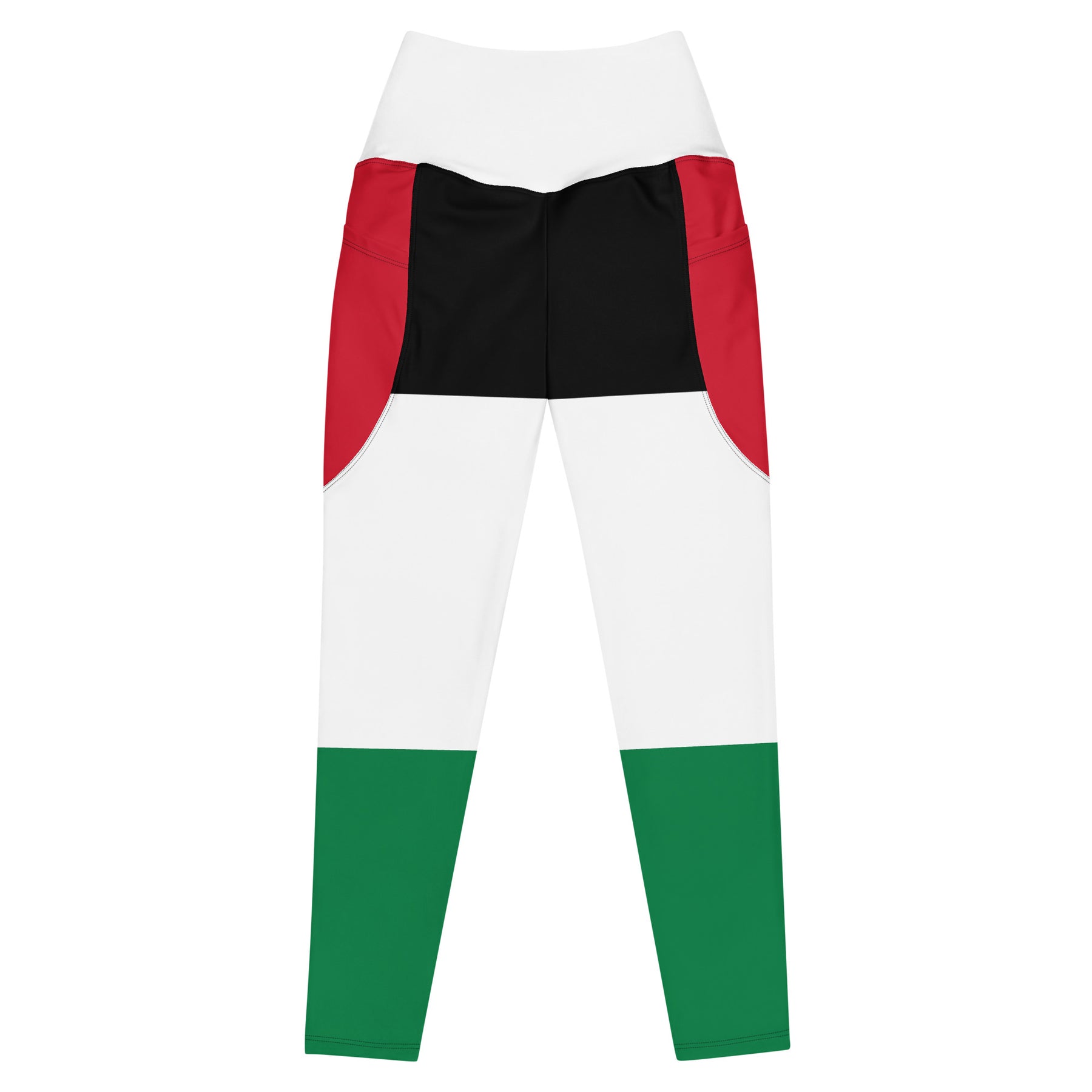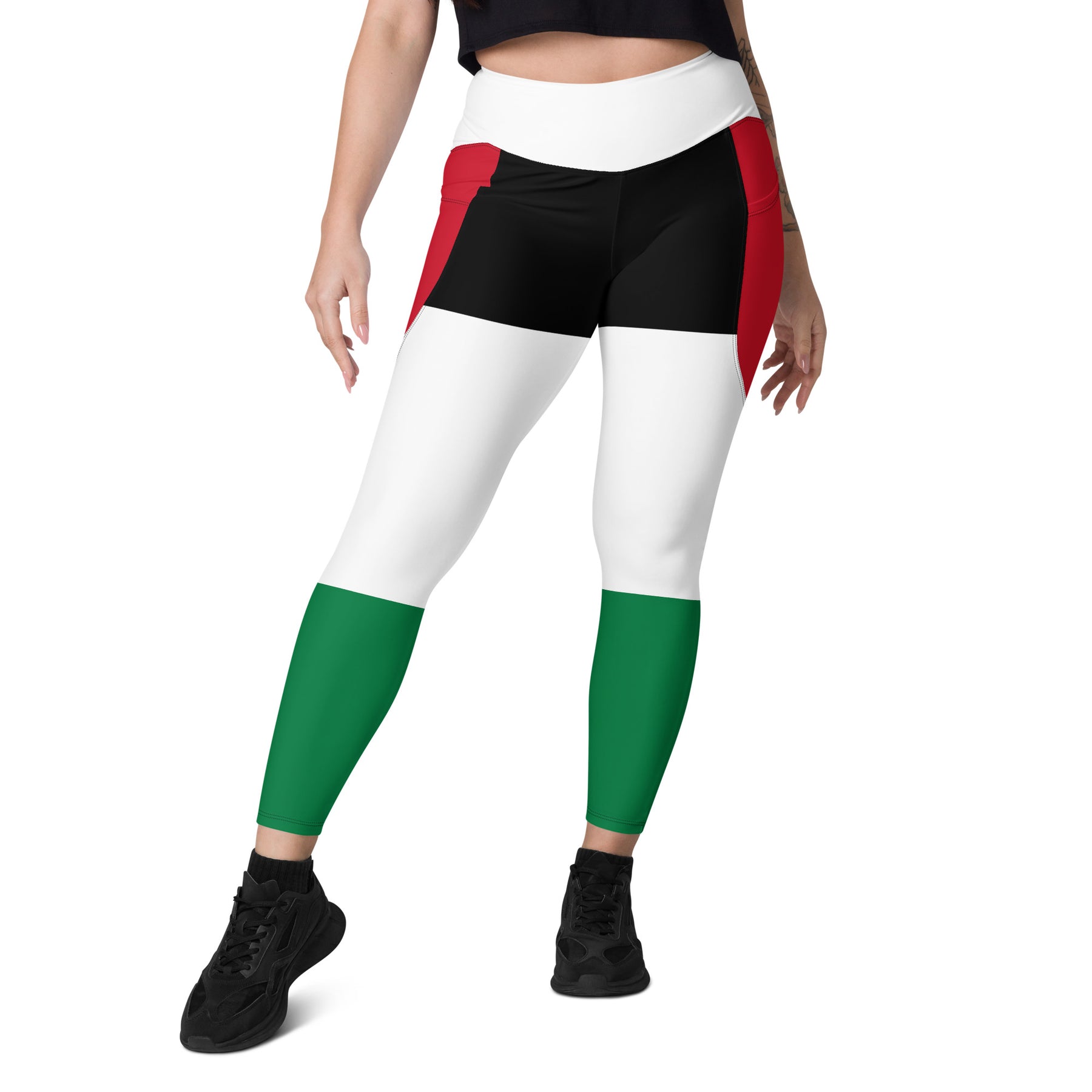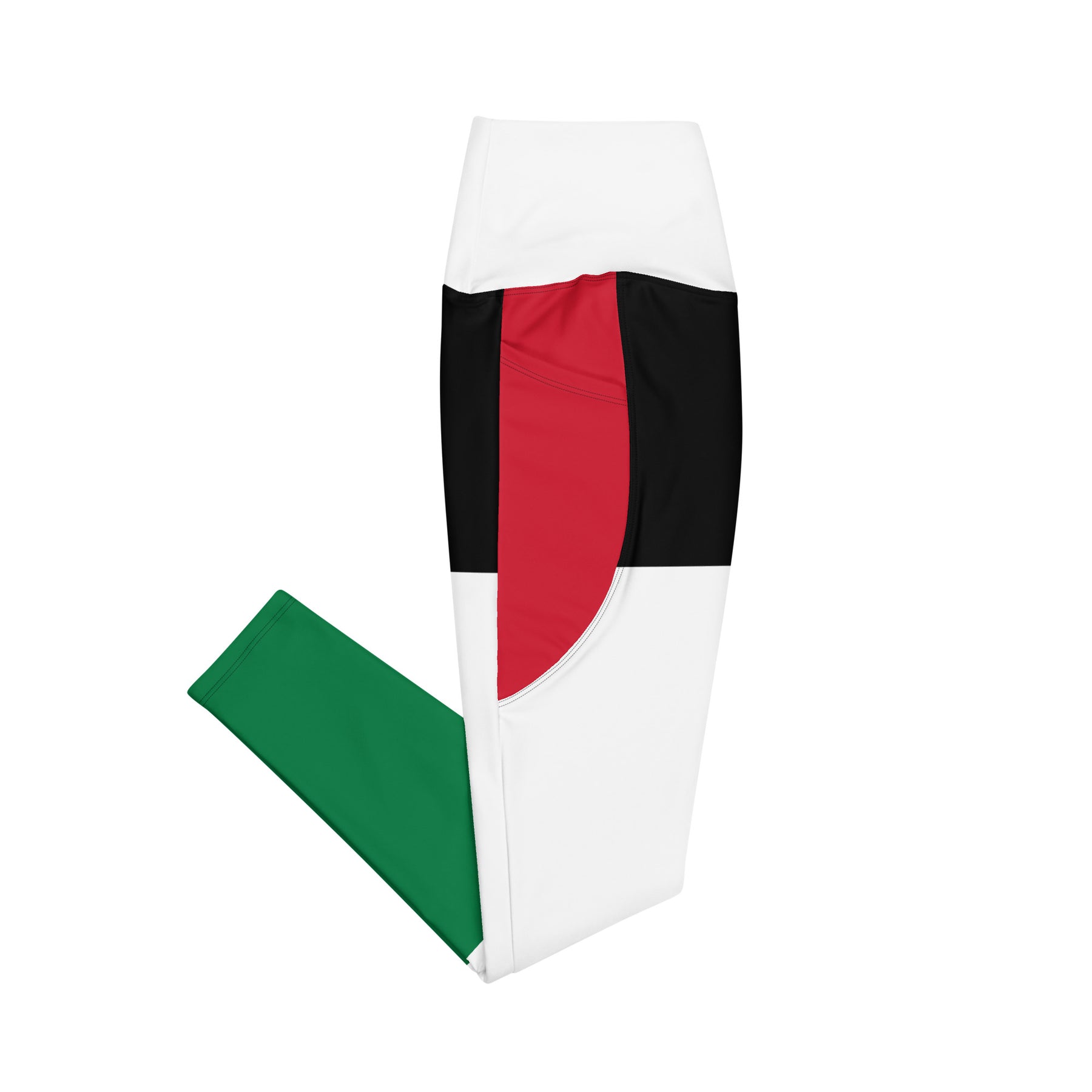 These high-waisted leggings feature deep side pockets and a bold Palestinian flag design—bringing movement, meaning, and everyday resistance together. Soft, stretchy, and built for action, they’re perfect for workouts, errands, or making a quiet stand with every step. Because pride doesn’t need to be loud to be powerful. Free Palestine.